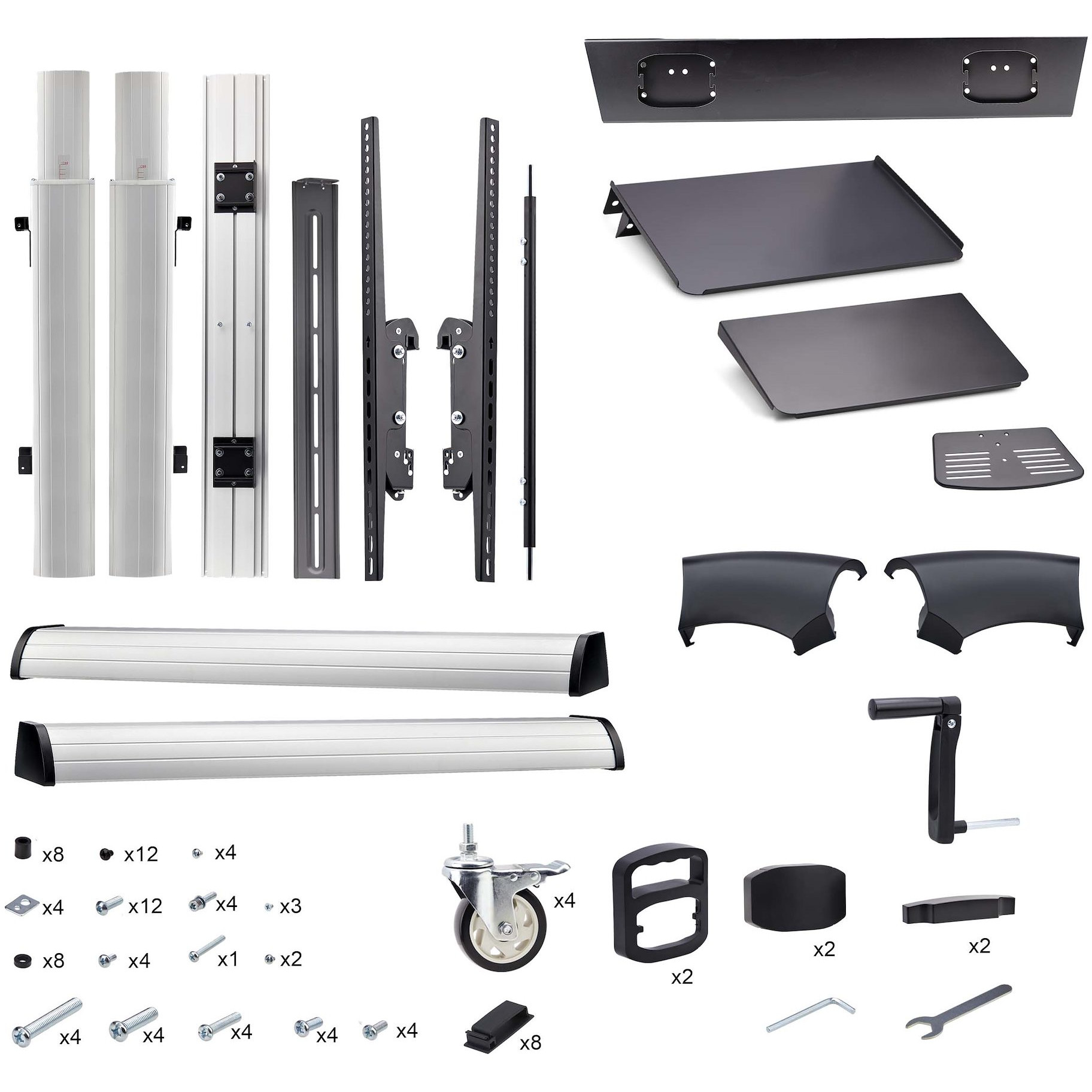 Für eine bessere Mobilität und Personalisierung verfügt dieser mobile Ständer über zwei unabhängig voneinander höhenverstellbare Medienablagen unter dem Display, die jeweils bis zu 5kg tragen können. Die Webcam-Ablage oben auf dem Display kann bis zu 2366mm vom Boden angehoben werden.