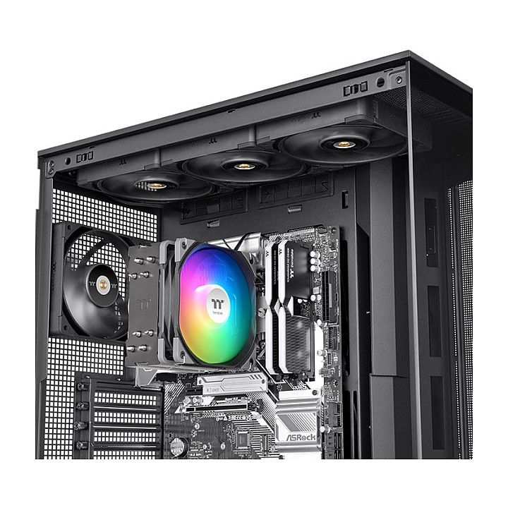 Der UX400 ARGB Sync verfügt über vier U-förmige Kupfer-Heatpipes mit Ø6 mm, die in direktem Kontakt mit der CPU für eine schnelle und zuverlässige Wärmeübertragung sorgen. Sein Single-Tower-Design mit hochwertigen Aluminiumlamellen sorgt für eine optimale Wärmeableitung und hält Ihr System kühl und stabil.