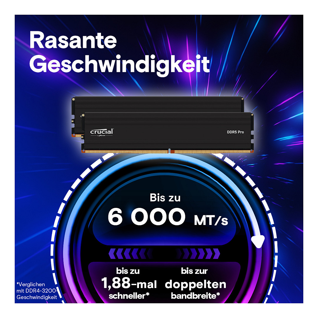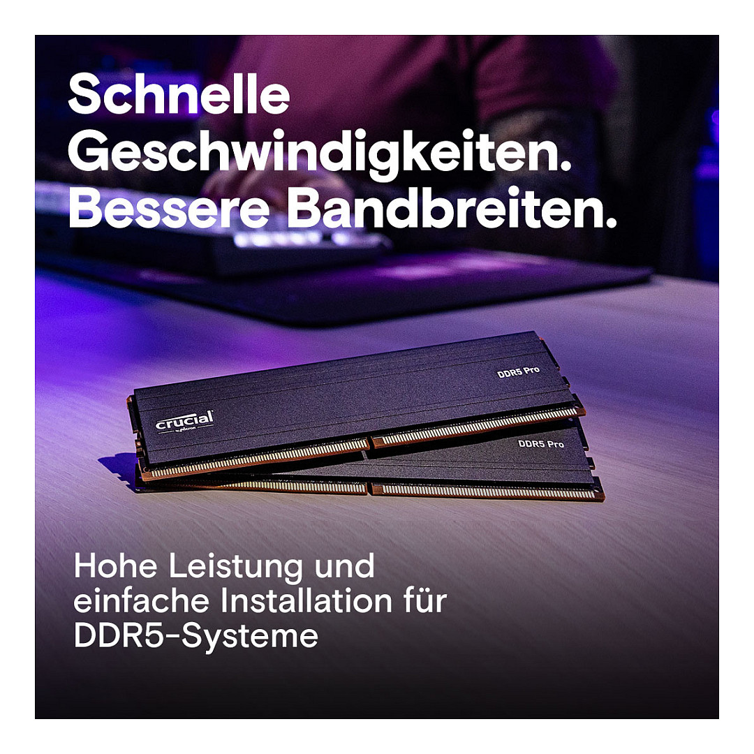 Mit der doppelten Bandbreite gegenüber der vorangegangenen Generation bietet Crucial DDR5 Pro Next-Level-Multitasking und eine schnellere Verarbeitung, so dass Sie selbst schwierige Workloads in kürzerer Zeit bewältigen können.