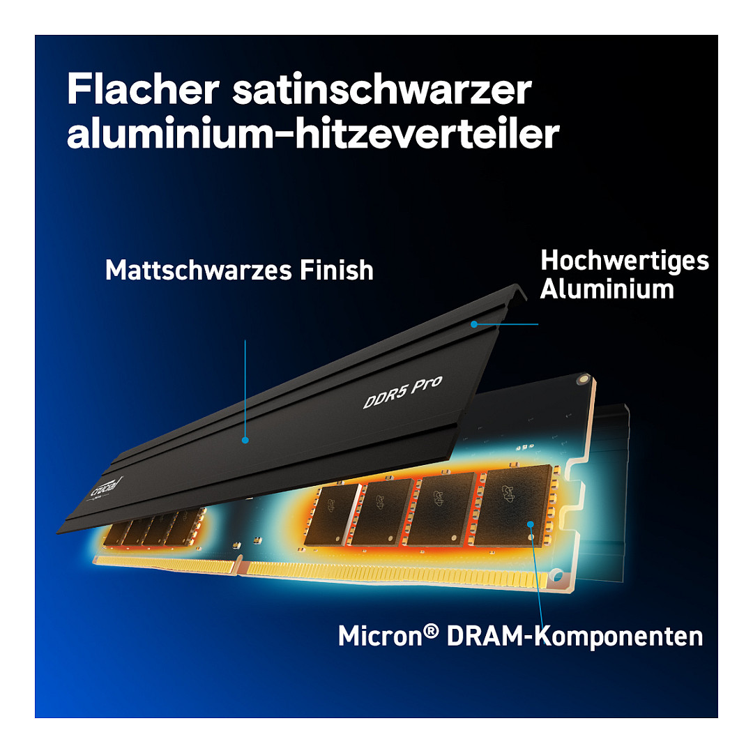 Dank unseres integrierten flachen Hitzeverteilers passt der Crucial DDR5 Pro sogar in kleinere PCs.