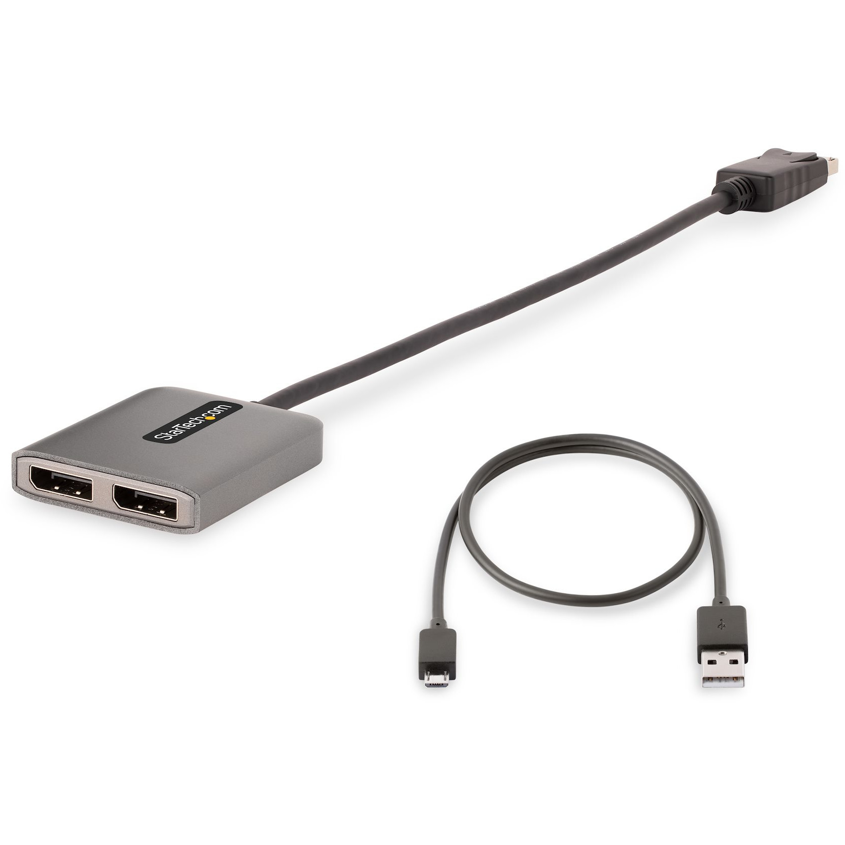 Dieser MST Hub arbeitet mit DisplayPort fähigen Windows Geräten mit Prozessoren der 11. Generation (und neuer) oder dedizierten Grafikkarten, die einen DisplayPort 1.4 Ausgang haben. Plug-and-Play Installation, keine Treiber oder Software erforderlich. Das 30 cm integrierte Kabel bietet Möglichkeiten für flexible Installationskonfigurationen und reduziert die Belastung von Anschlüssen und Steckern. Außerdem wird dieser Dual-Monitor-Splitter über USB betrieben und mit einem USB Micro-B Stromversorgungskabel geliefert.