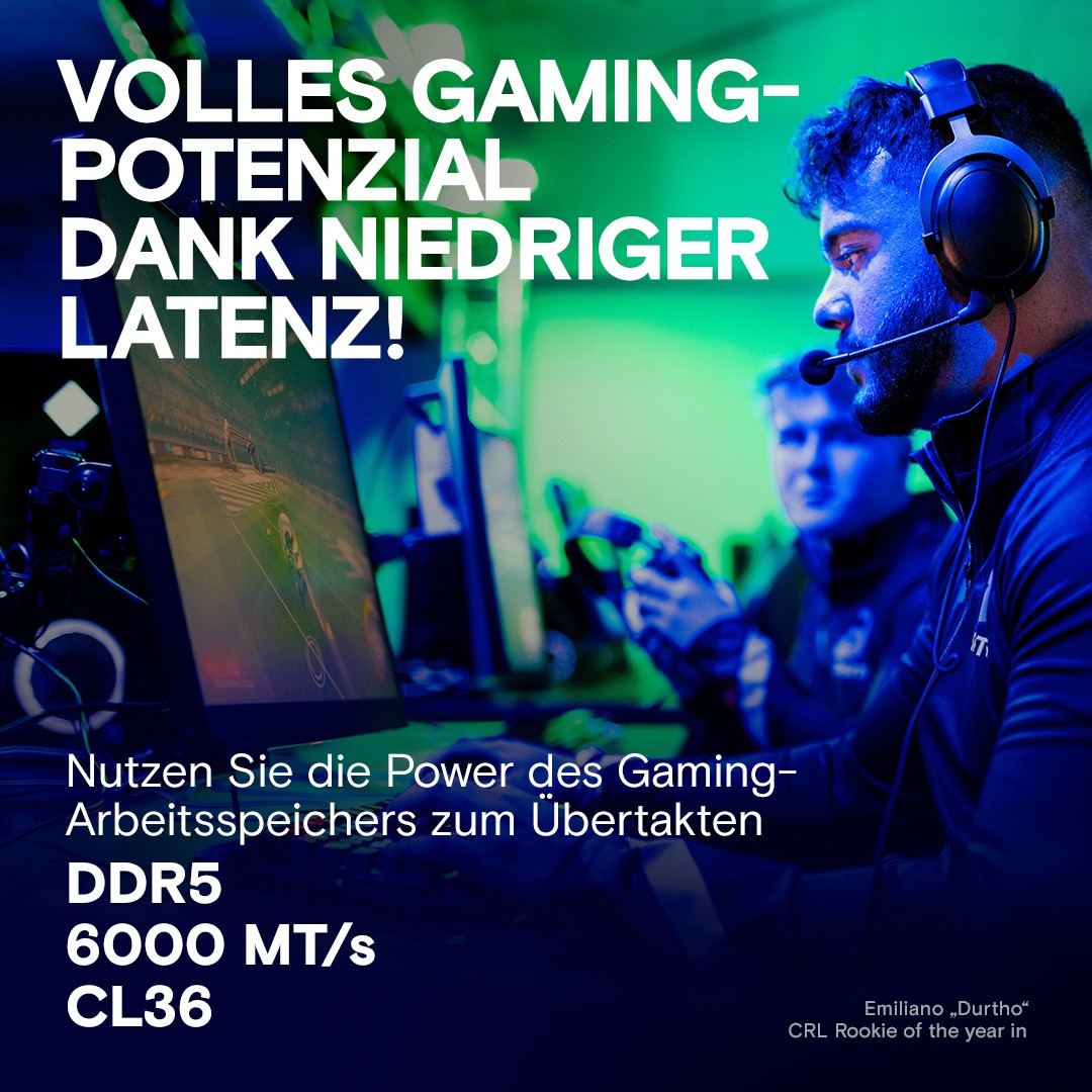 Bringen Sie die Leistung auf die nächste Stufe mit der enormen Geschwindigkeit und Bandbreite von Crucial® DDR5 Pro Speicher: Overclocking Edition. Mobilisieren Sie die Leistung niedriger Latenz, um noch schneller zu werden und den nächsten Sieg zu sichern, anstatt sich über Leistungsengpässe zu ärgern. Unser leistungsstarker DDR5 Pro Speicher zum Übertakten unterstützt Multi-Core-CPUs der nächsten Generation sowie Intel® XMP 3.0 und AMD EXPO™ auf jedem Modul.