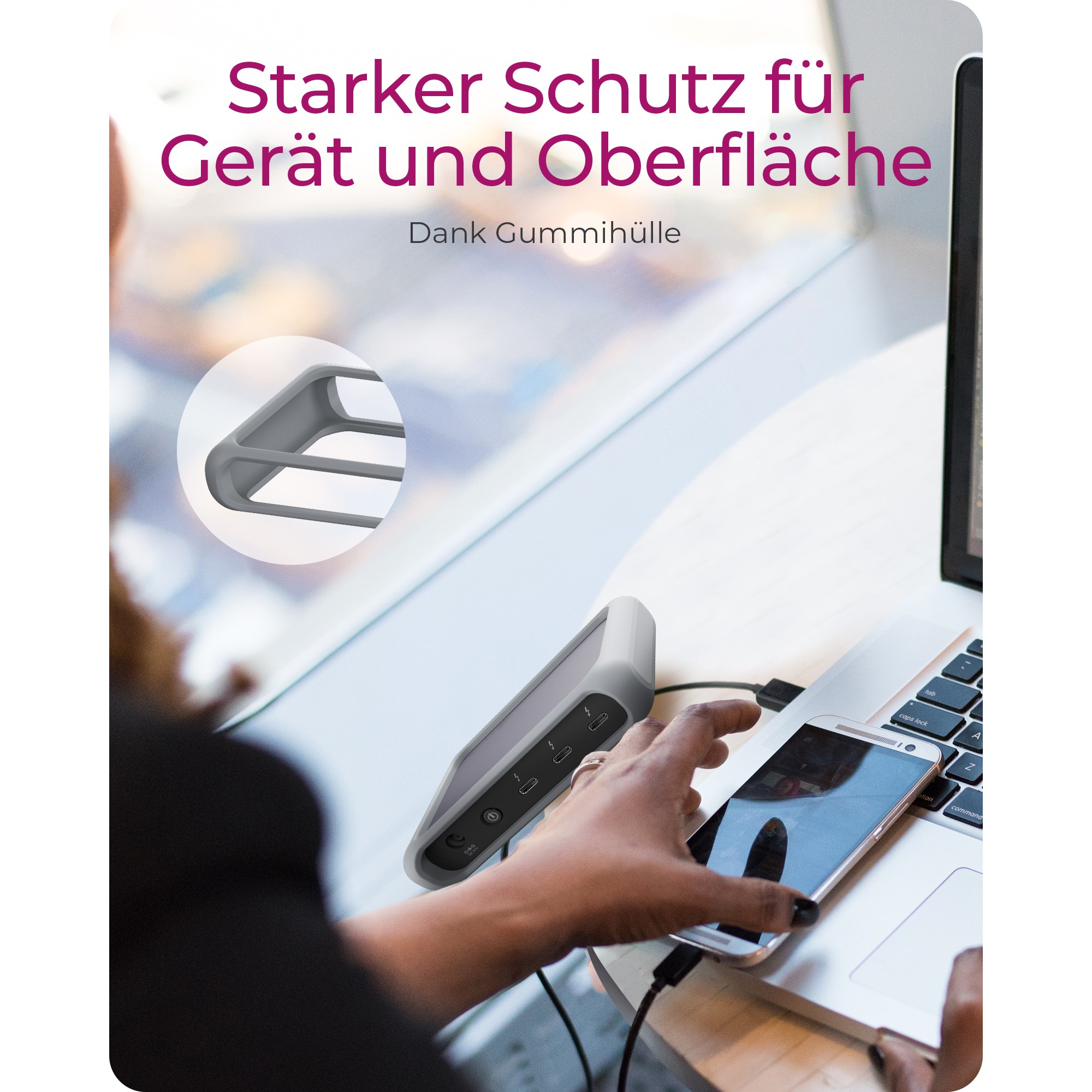 Wenn Sie den Hub an Ihr Notebook anschließen, kann Ihr Notebook bei Bedarf bis zu 85 W Ladeleistung über die Power Delivery Funktion ziehen. Mit 85 W Notebook-Ladeleistung übertrifft der IB-HUB801-TB4 die meisten vergleichbaren Thunderbolt™ 4 Hubs, die im Vergleich meist bis zu 60 W liefern.
