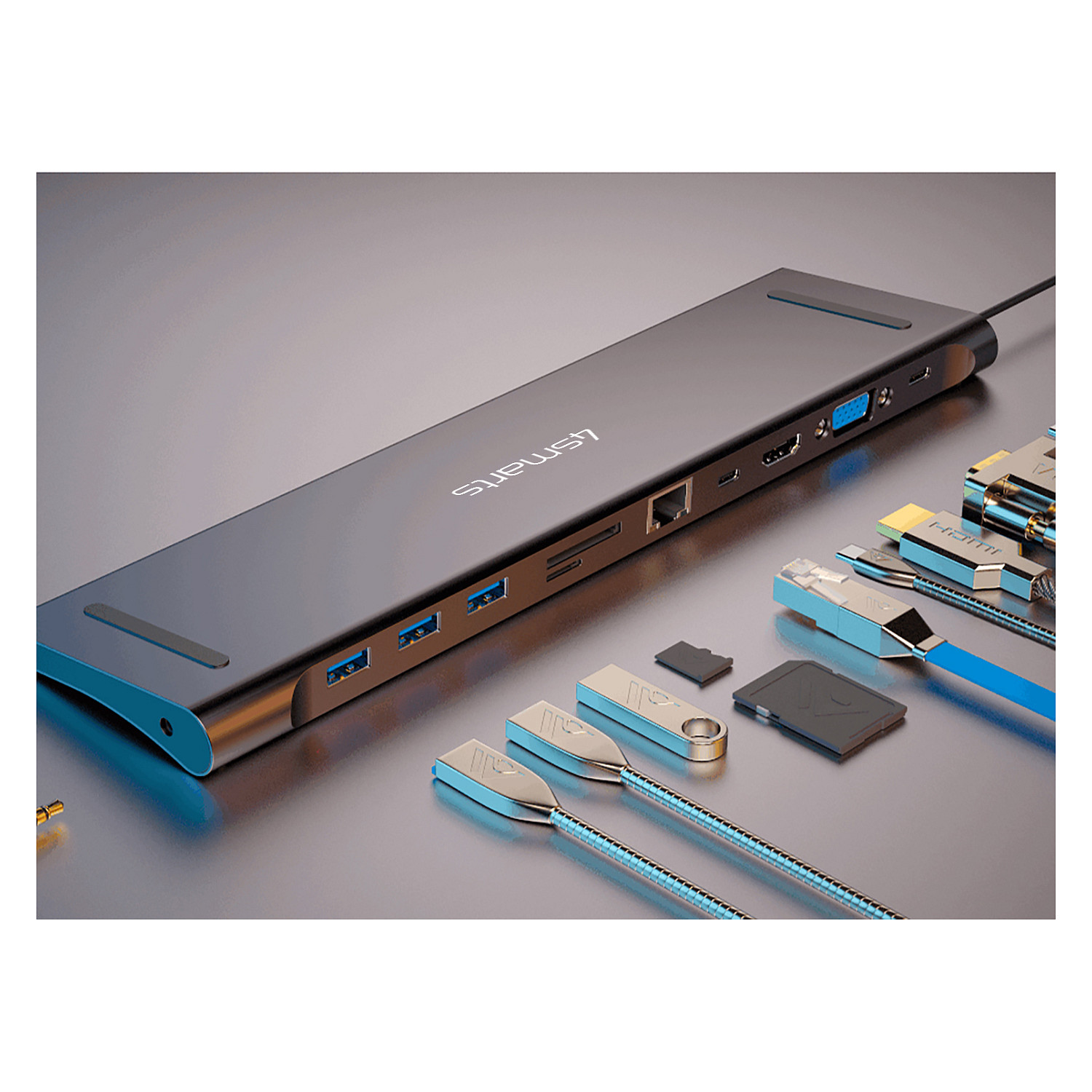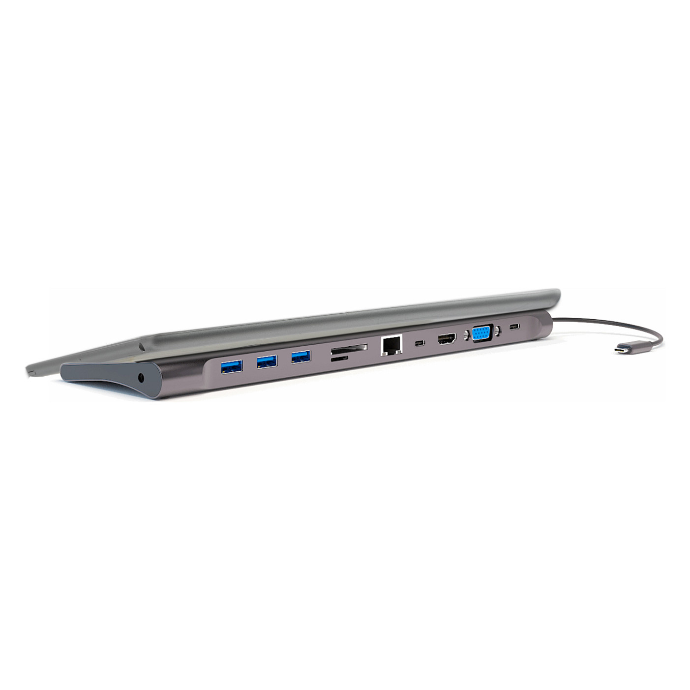 Dieses USB-C-11in1 Multiport Dock macht aus deinem Laptop oder deinem Tablet eine vielseitige Workstation mit zahlreichen Anschlüssen, die neueren Laptop-Modellen meist fehlen.