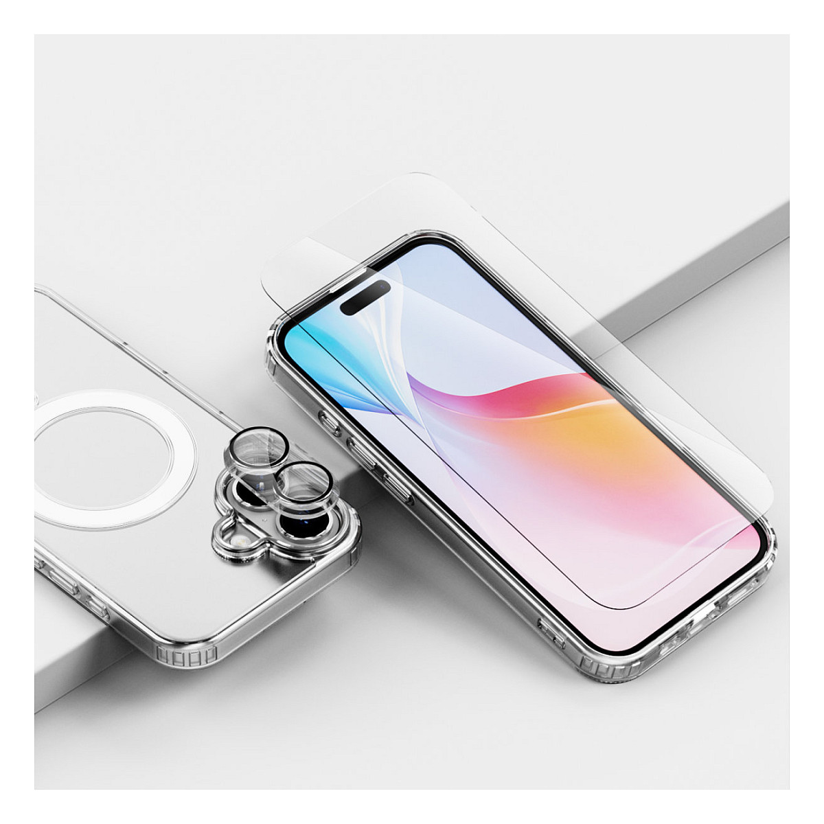 Erlebe den ultimativen Rundumschutz mit unserer Kombination aus 9H-Schutzglas und MagSafe-Hülle. Das 9H-Schutzglas schützt das Display und die Kamera deines iPhone 16 effektiv vor Kratzern und Stößen, während die Berührungsempfindlichkeit und die Gesichtserkennung vollständig erhalten bleiben. Die MagSafe-kompatible Hülle schützt dein Gerät zusätzlich vor Beschädigungen und lässt dank ihrer Transparenz das Design deines Smartphones voll zur Geltung kommen.