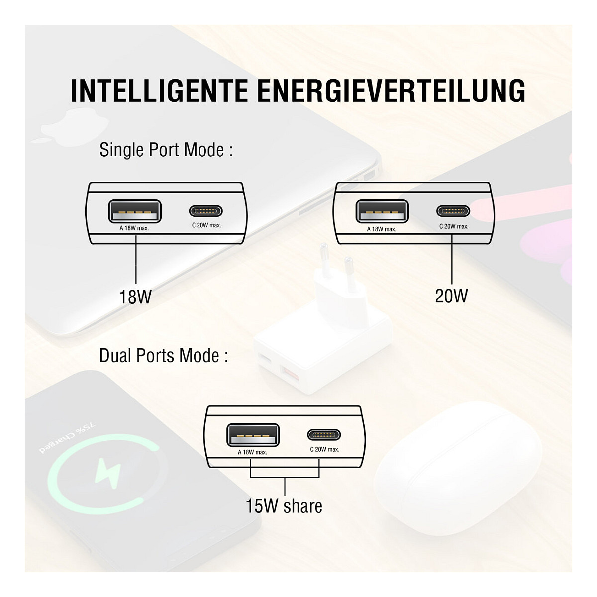 Ob alt oder neu – mit USB-C und USB-A lädst du jedes Gerät zuverlässig. Smartphones, Tablets oder Zubehör mit älterem Anschluss: Der kompakte Ladeprofi bringt bis zu 20 W Power flexibel dorthin, wo du sie brauchst – zu Hause, im Büro oder unterwegs.