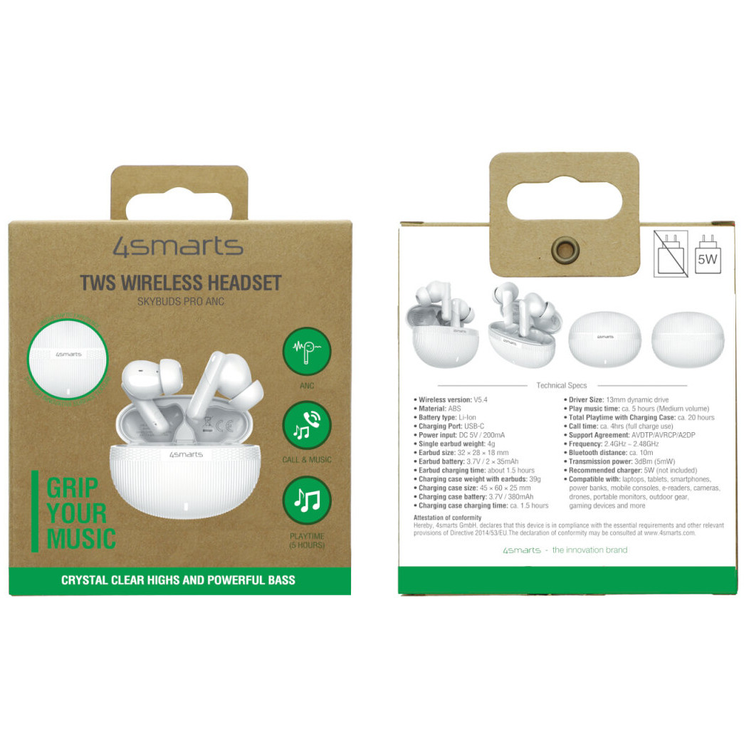 Bis zu 5 Stunden Musik pro Ladung, mit Ladecase sogar 20 Stunden. Das beiliegende USB-C-Ladekabel macht Nachladen einfach – ein Ladegerät ab 5 W ist optional verwendbar.
