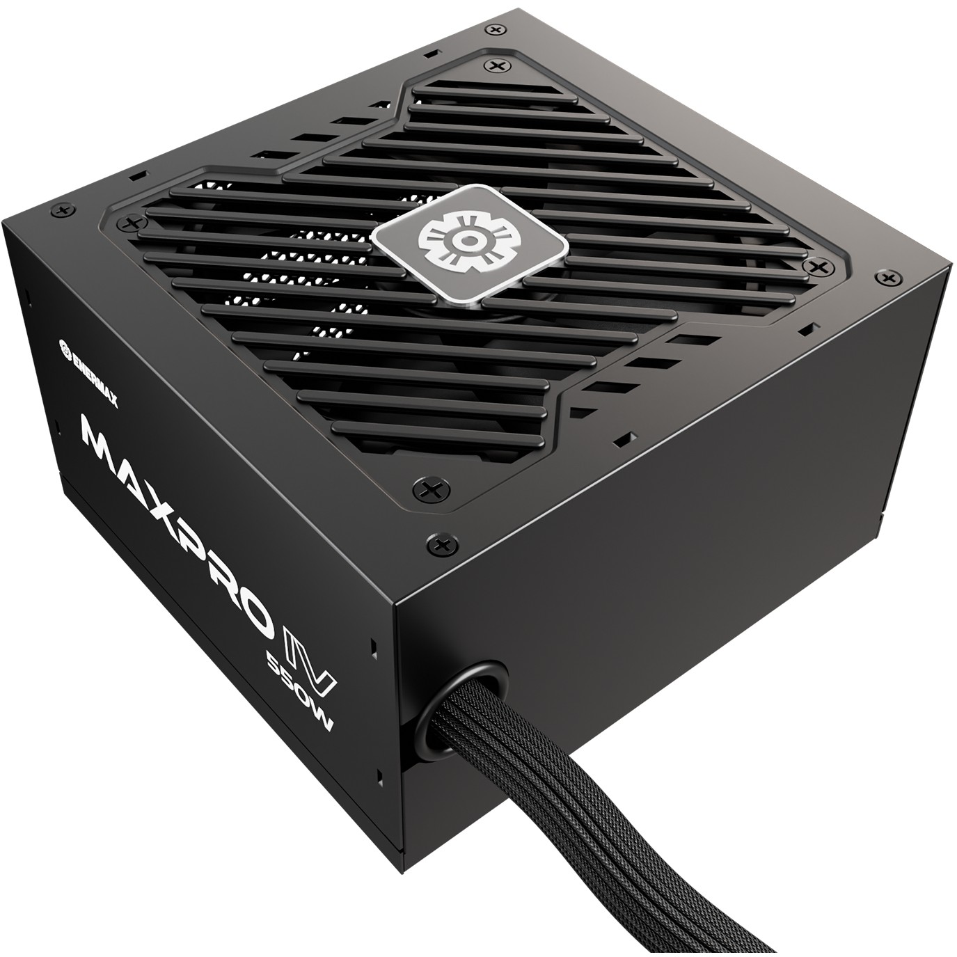 Enermax EMP550W. Gesamtleistung: 550 W, AC Eingangsspannung: 200 - 240 V, AC Eingangsfrequenz: 50/60 Hz. Motherboard Anschlussstecker: 20+4 pin ATX, Kabeltyp: Nicht-modular. Zweck: PC, 80 Plus Zertifizierung: 80 PLUS, Mittlere Betriebsdauer zwischen Ausfällen (MTBF): 100000 h. Produktfarbe: Schwarz, Lüfterdurchmesser: 12 cm. Breite: 150 mm, Tiefe: 140 mm, Höhe: 86 mm