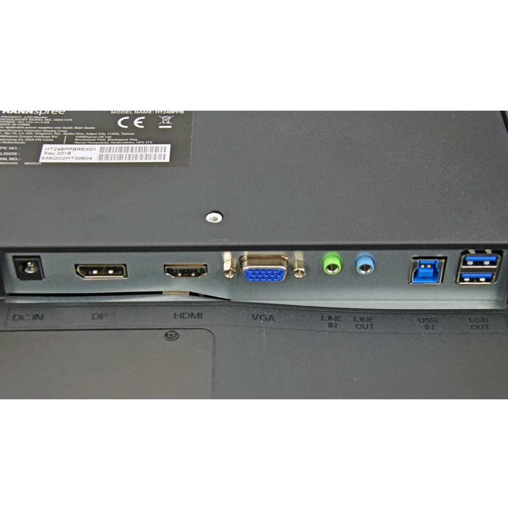 Hannspree HT 248 PPB. Bildschirmdiagonale: 60,5 cm (23.8"), Display-Auflösung: 1920 x 1080 Pixel, HD-Typ: Full HD, Bildschirmtechnologie: LCD, Reaktionszeit: 14 ms, Natives Seitenverhältnis: 16:9, Bildwinkel, horizontal: 178°, Bildwinkel, vertikal: 178°. Eingebaute Lautsprecher. Integrierter USB-Hub, USB-Hub-Version: 3.2 Gen 1 (3.1 Gen 1). VESA-Halterung. Produktfarbe: Schwarz