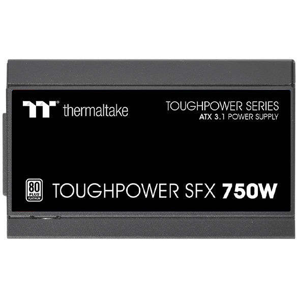 Thermaltake Toughpower SFX Platinum 750W - TT Premium Edition. Gesamtleistung: 750 W, AC Eingangsspannung: 100 - 240 V, AC Eingangsfrequenz: 50/60 Hz. Motherboard Anschlussstecker: 24-pin ATX, Stromkabellänge Motherboard: 30 cm, SATA-Netzkabellänge: 300,450,600,750 mm. Zweck: PC, Stromversorgungseinheit (PSU) Formfaktor: SFX, 80 Plus Zertifizierung: 80 PLUS Platinum. Produktfarbe: Schwarz, Kühlung: Aktiv, Lüfterdurchmesser: 9 cm. Sicherheit: CE/UKCA/FCC/ICES/CB/TUV/cTUVus/LVD/CCC/BSMI/ S-MARK/EAC/RCM