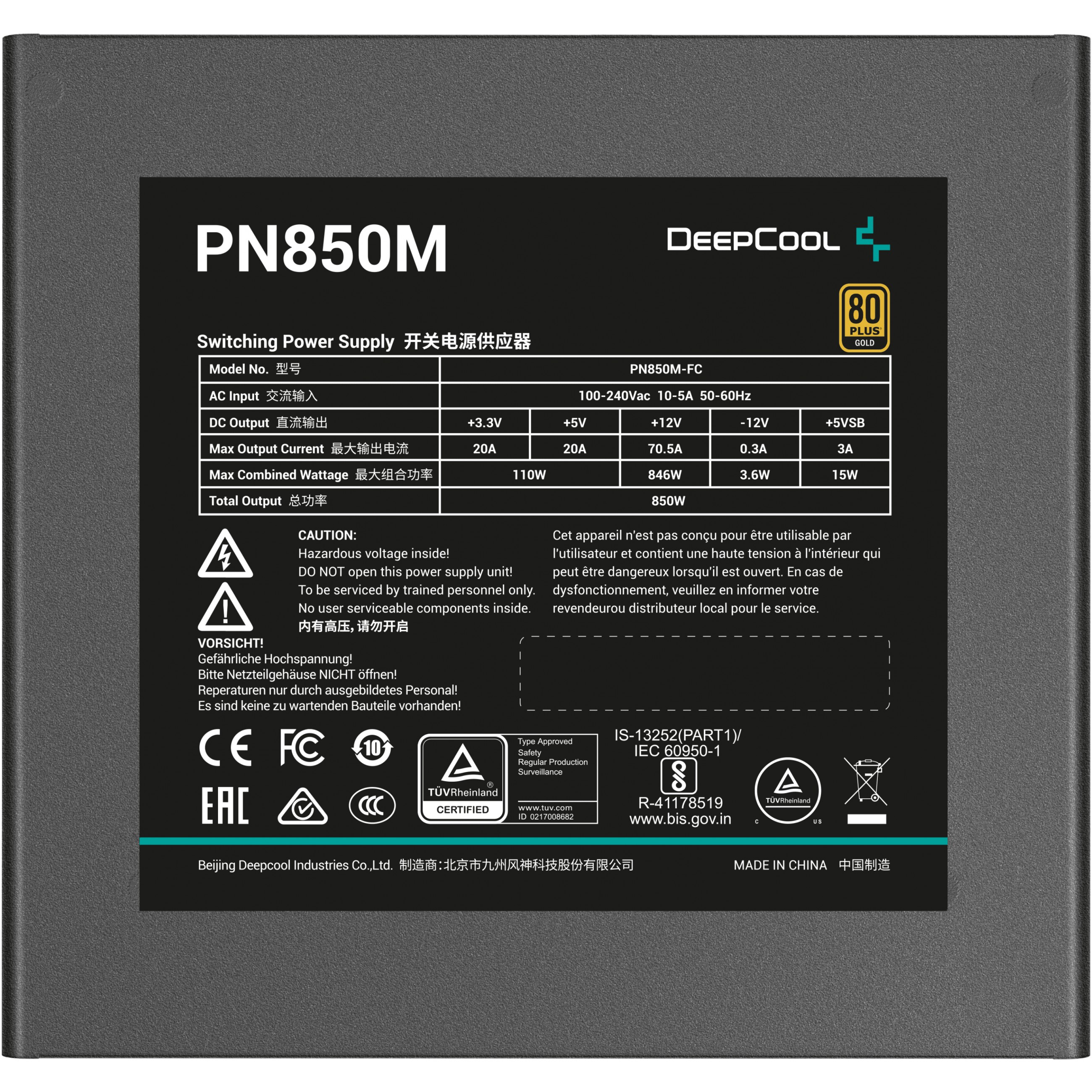 Gamer Storm PN850M. Gesamtleistung: 850 W, AC Eingangsspannung: 100 - 240 V, AC Eingangsfrequenz: 50/60 Hz. Motherboard Anschlussstecker: 20+4 pin ATX, Stromkabellänge Motherboard: 55 cm, SATA-Netzkabellänge: 450,570,690,810 mm. Zweck: PC, Stromversorgungseinheit (PSU) Formfaktor: ATX, 80 Plus Zertifizierung: 80 PLUS Gold. Produktfarbe: Schwarz, Kühlung: Aktiv, Lüfterdurchmesser: 12 cm. Mitgelieferte Kabel: AC