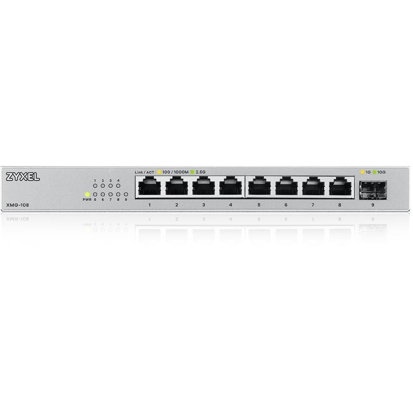Zyxel XMG-108. Switch-Typ: Unmanaged. Basic Switching RJ-45 Ethernet Ports-Typ: 2.5G Ethernet (100/1000/2500), Anzahl der basisschaltenden RJ-45 Ethernet Ports: 8. MAC-Adressentabelle: 4000 Eintragungen, Routing-/Switching-Kapazität: 60 Gbit/s. Netzstandard: IEEE 802.1p, IEEE 802.3ab, IEEE 802.3ae, IEEE 802.3az, IEEE 802.3bz, IEEE 802.3u, IEEE 802.3x,.... Wandmontage