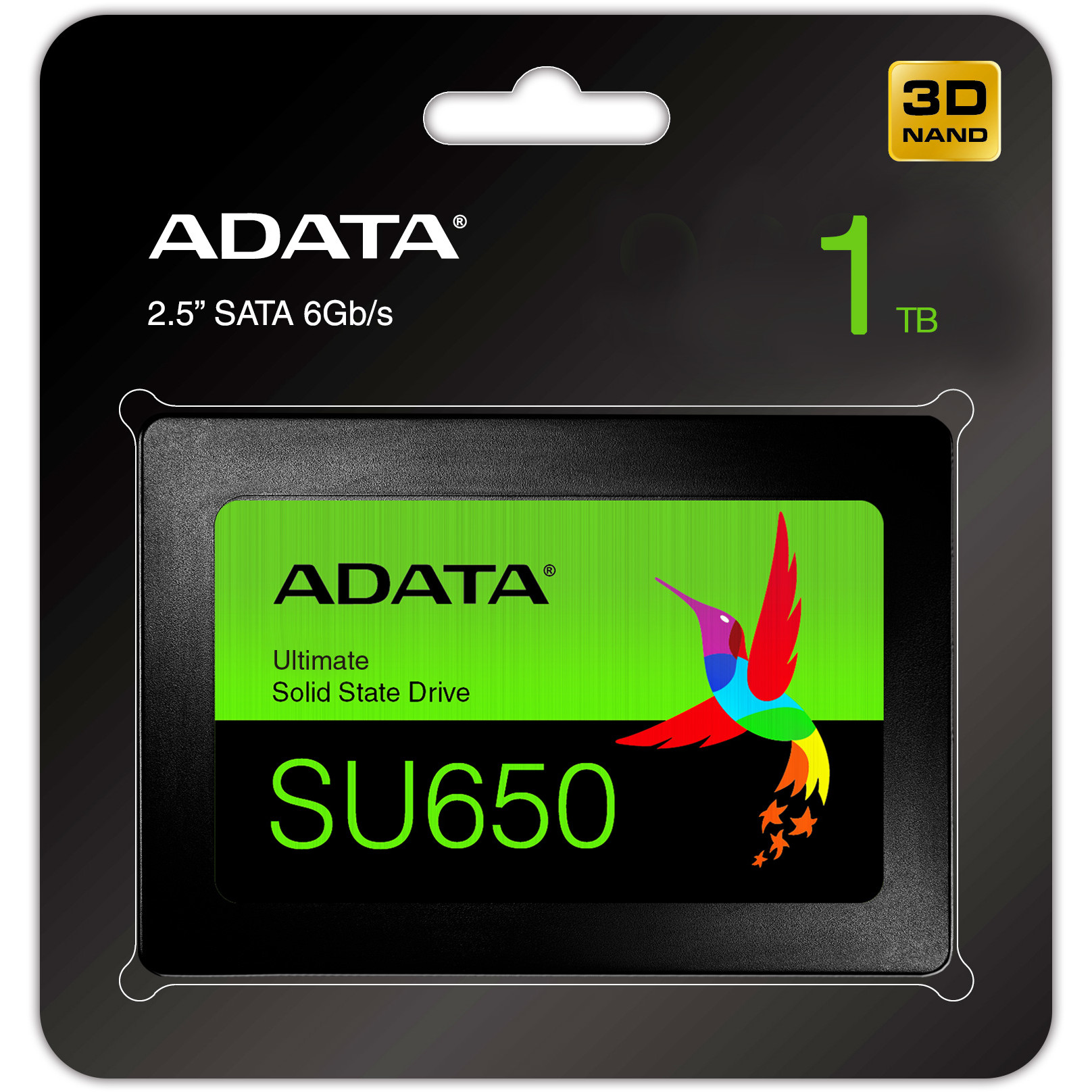 ADATA SU650. SSD Speicherkapazität: 1 TB, SSD-Formfaktor: 2.5", Lesegeschwindigkeit: 520 MB/s, Schreibgeschwindigkeit: 450 MB/s, Datenübertragungsrate: 6 Gbit/s, Komponente für: PC