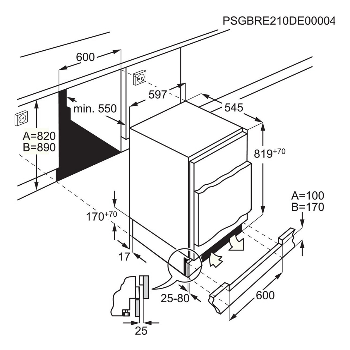AEG OSK6I82EF UB-Kühlschrank E 134L 82cm LowFrost Festtür