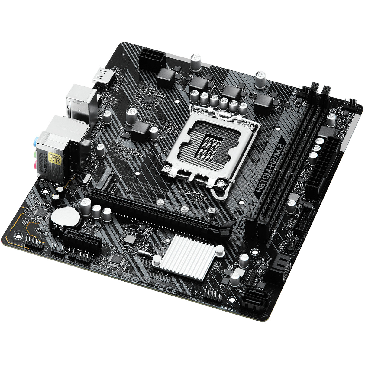 Asrock H610M-H2/M.2. Prozessorhersteller: Intel, Prozessorsockel: LGA 1700, Kompatible Prozessoren: Intel Core i3 12th Gen, Intel Core i3 13th Gen, Intel Core i3 14th Gen, Intel Core i5 12th Gen,.... Unterstützte Arbeitsspeicher: DDR4-SDRAM, RAM-Speicher maximal: 64 GB, Arbeitsspeicher Typ: DIMM. Unterstützte Speicherlaufwerk-Schnittstellen: M.2, SATA III, Unterstützte Speicherlaufwerke: HDD & SSD. Ethernet Schnittstellen Typ: Schnelles Ethernet, Gigabit Ethernet, LAN-Controller: Realtek RTL8111H. Komponente für: PC, Motherboardformfaktor: micro ATX, Motherboard Chipsatz Familie: Intel