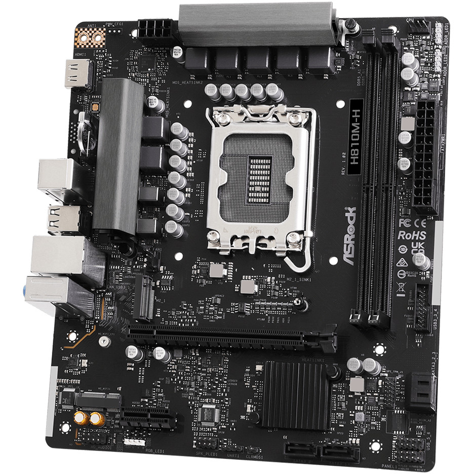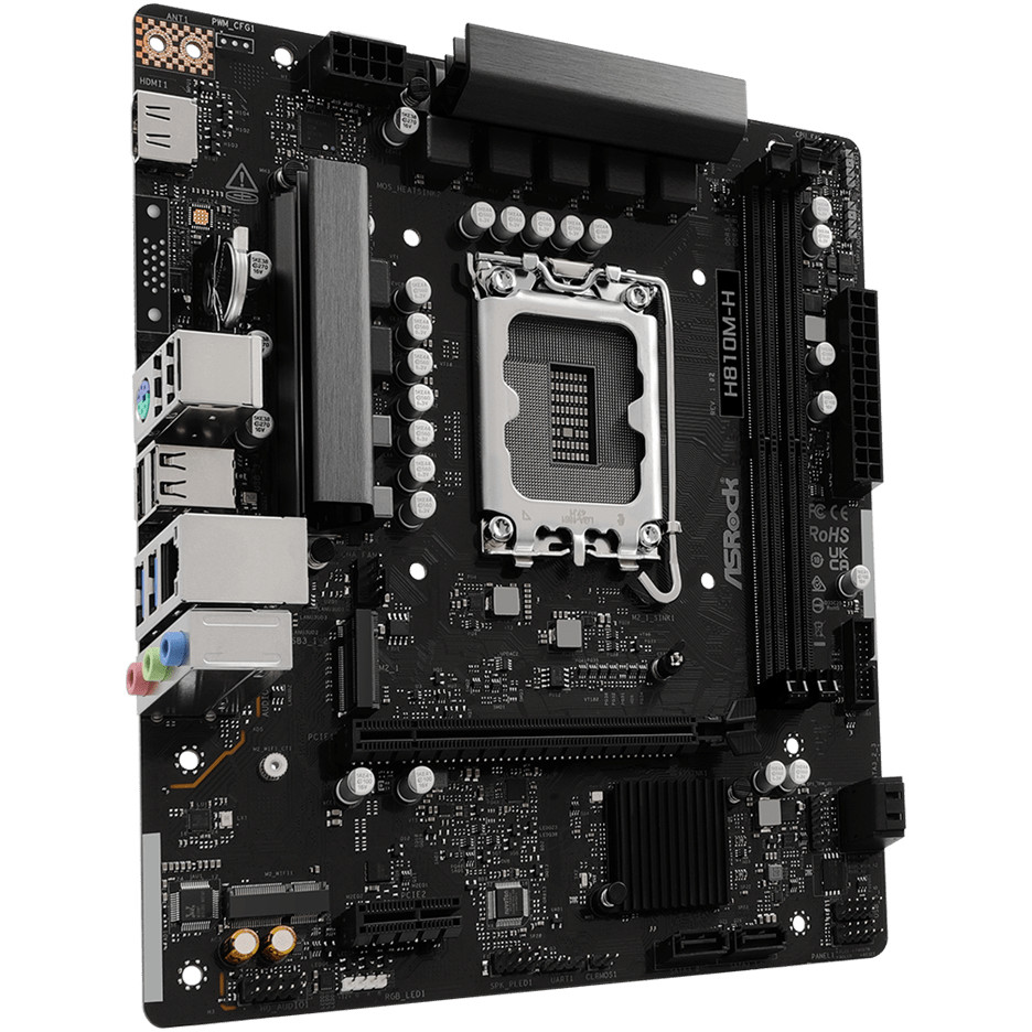 Asrock H810M-H. Prozessorhersteller: Intel, Prozessorsockel: LGA 1851 (Socket V1), Kompatible Prozessoren: Intel Core Ultra (Series 2). Unterstützte Arbeitsspeicher: DDR5-SDRAM, RAM-Speicher maximal: 128 GB, Arbeitsspeicher Typ: DIMM. Unterstützte Speicherlaufwerk-Schnittstellen: M.2, SATA III, Unterstützte Speicherlaufwerke: HDD & SSD. Maximale Auflösung: 3840 x 2160 Pixel. Ethernet Schnittstellen Typ: Gigabit Ethernet, LAN-Controller: Realtek RTL8111H