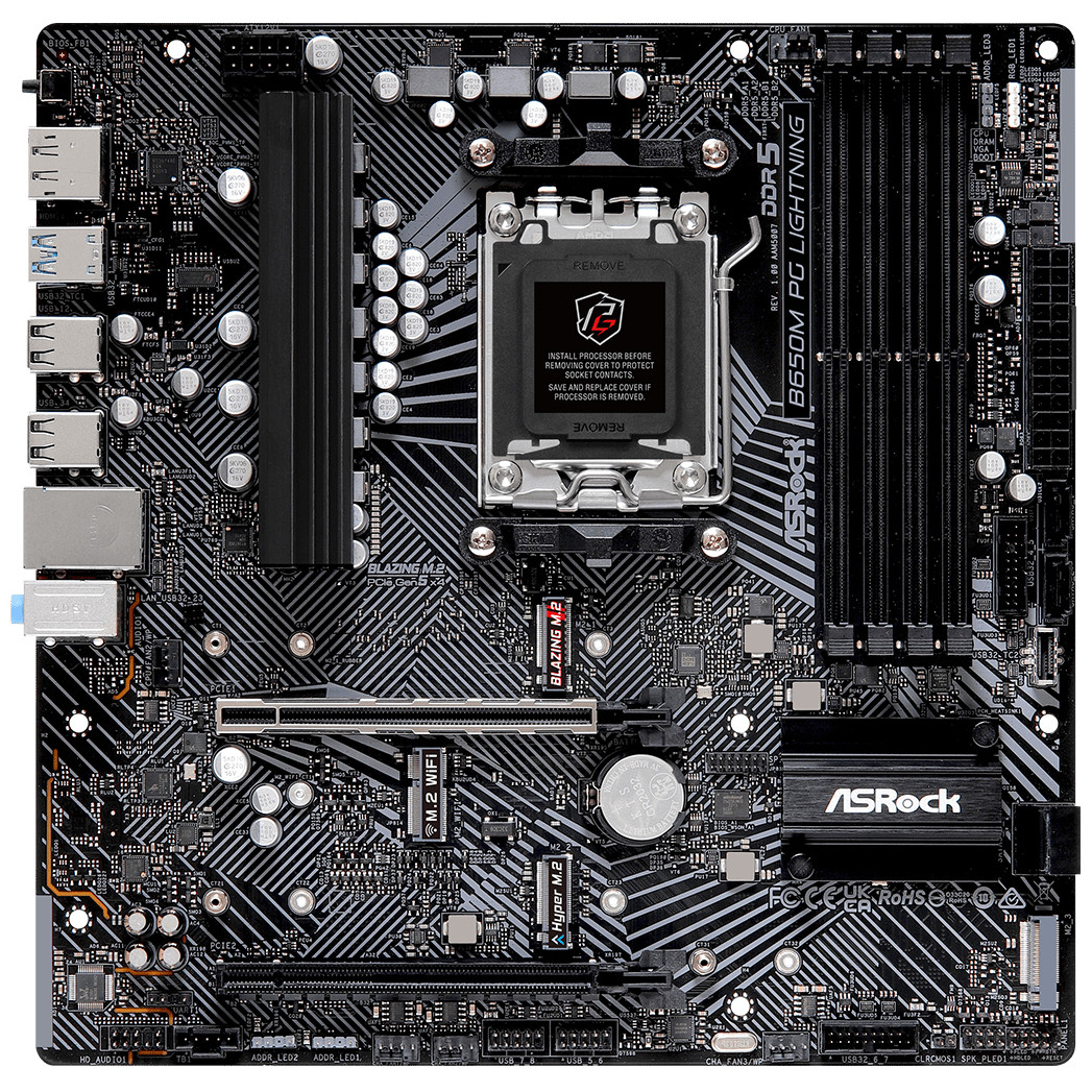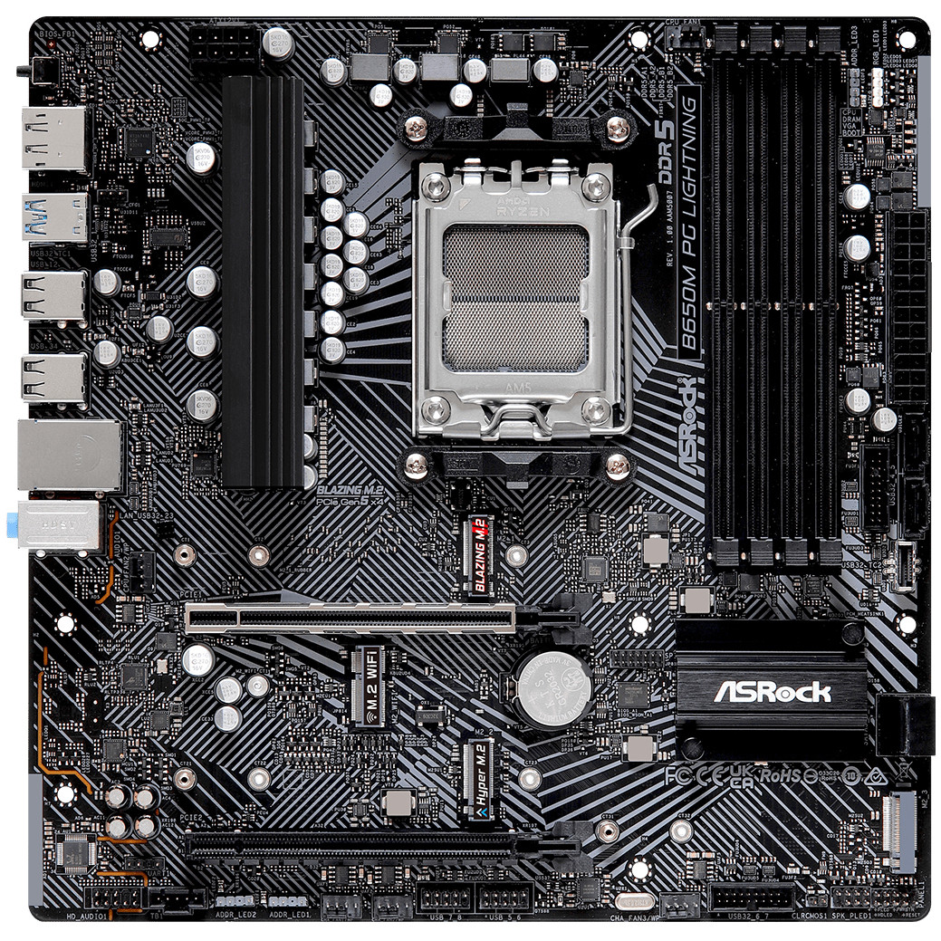 Asrock B650M PG Lightning. Prozessorhersteller: AMD, Prozessorsockel: Sockel AM5, Kompatible Prozessoren: AMD Ryzen 7000 Series. Unterstützte Arbeitsspeicher: DDR5-SDRAM, RAM-Speicher maximal: 192 GB, Arbeitsspeicher Typ: DIMM. Unterstützte Speicherlaufwerk-Schnittstellen: M.2, PCI Express 4.0, PCI Express 5.0, SATA III, Unterstützte Speicherlaufwerke: HDD & SSD, RAID Level: 0, 1, 10. Parallele Verarbeitungstechnologie: CrossFire, Maximale Auflösung: 3840 x 2160 Pixel. USB-Stecker: USB Typ-A, USB Typ-C