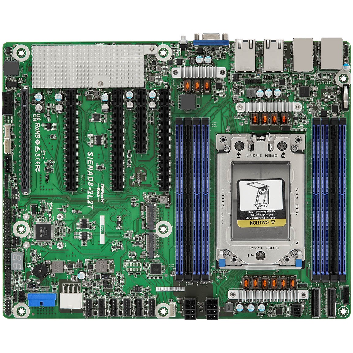 Asrock SIENAD8-2L2T. Prozessorhersteller: AMD, Prozessorsockel: Socket SP6, Kompatible Prozessoren: AMD EPYC. Unterstützte Arbeitsspeicher: DDR5-SDRAM, Arbeitsspeicher Typ: DIMM, Speicherspannung: 1.1 V. Unterstützte Speicherlaufwerk-Schnittstellen: M.2, PCI Express 5.0, Unterstützte Speicherlaufwerke: SSD. Grafikkarte-Familie: ASPEED, Grafikkarte: AST2600. Ethernet Schnittstellen Typ: 10 Gigabit Ethernet, Gigabit Ethernet, LAN-Controller: Intel I210, Intel X710-AT2