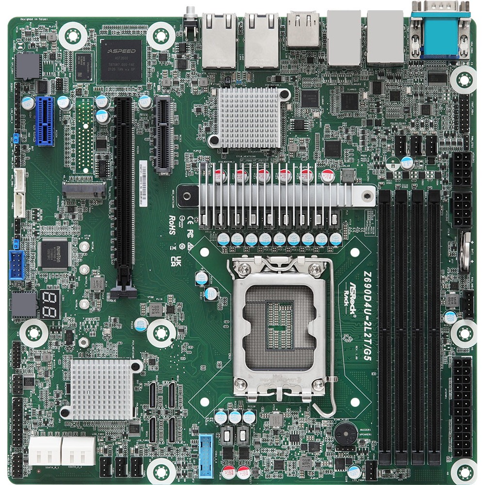 Asrock Z690D4U-2L2T/G5. Prozessorhersteller: Intel, Prozessorsockel: LGA 1700, Kompatible Prozessoren: Intel® Celeron®, Intel® Pentium®. Unterstützte Arbeitsspeicher: DDR5-SDRAM, Arbeitsspeicher Typ: DIMM, ECC-Kompatibilität: Nicht-ECC. Unterstützte Speicherlaufwerk-Schnittstellen: M.2, SATA III, Unterstützte Speicherlaufwerke: HDD & SSD. Grafikkarte-Familie: ASPEED, Grafikkarte: AST2600. LAN-Controller: Intel I210, Intel® X710