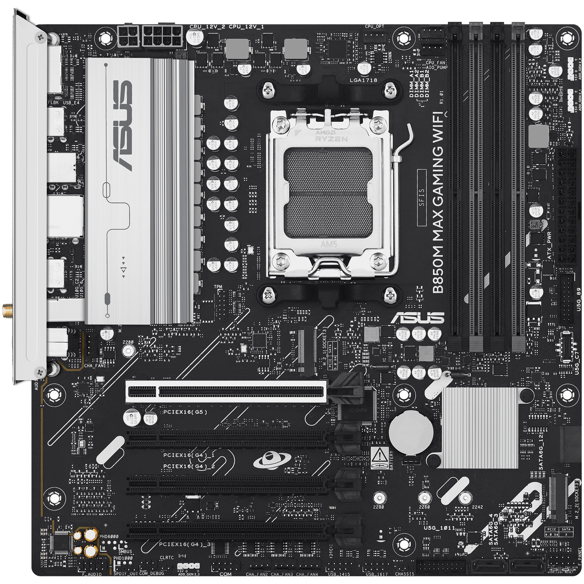 Das B850M MAX GAMING WIFI verfügt über ein 8+2+1-Phasen-Stromversorgungssystem mit diskreten MOSFETs, das eine effiziente und stabile Stromversorgung für AMD-Prozessoren sowie eine konstante Leistung für den täglichen Gebrauch gewährleistet.