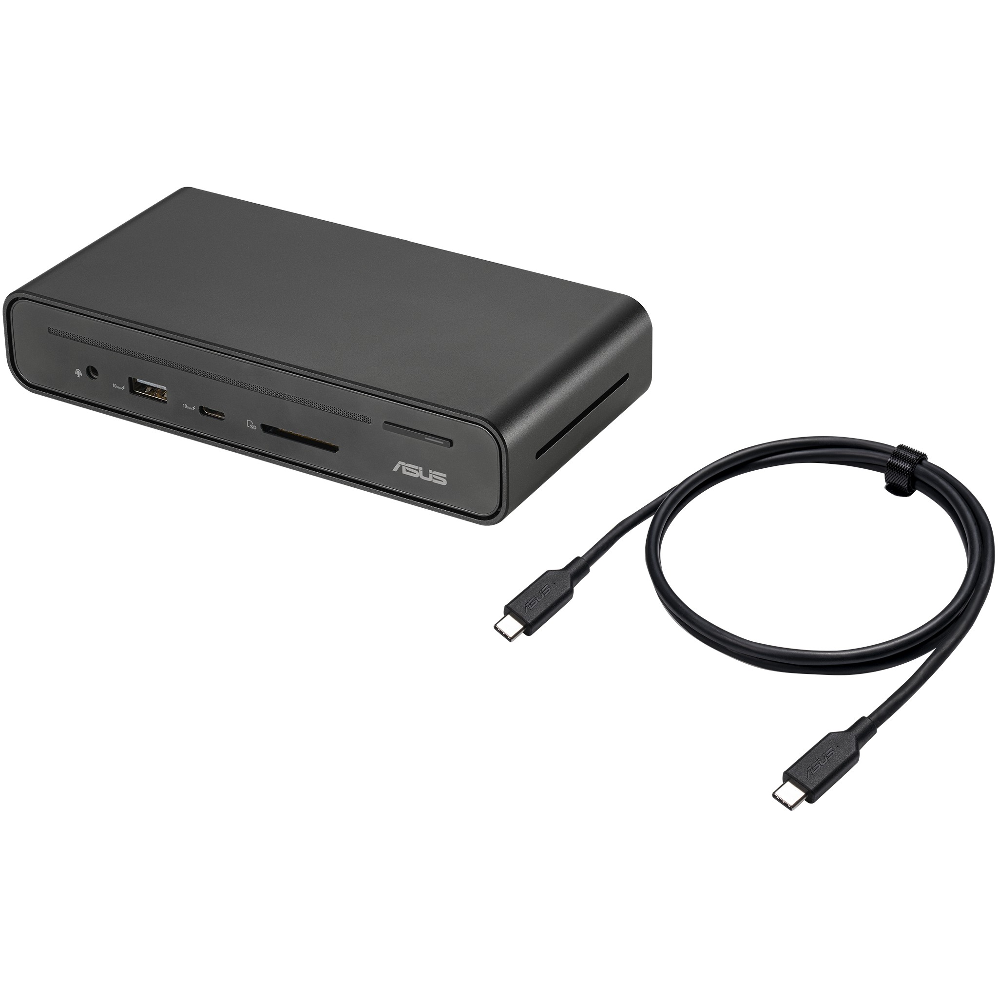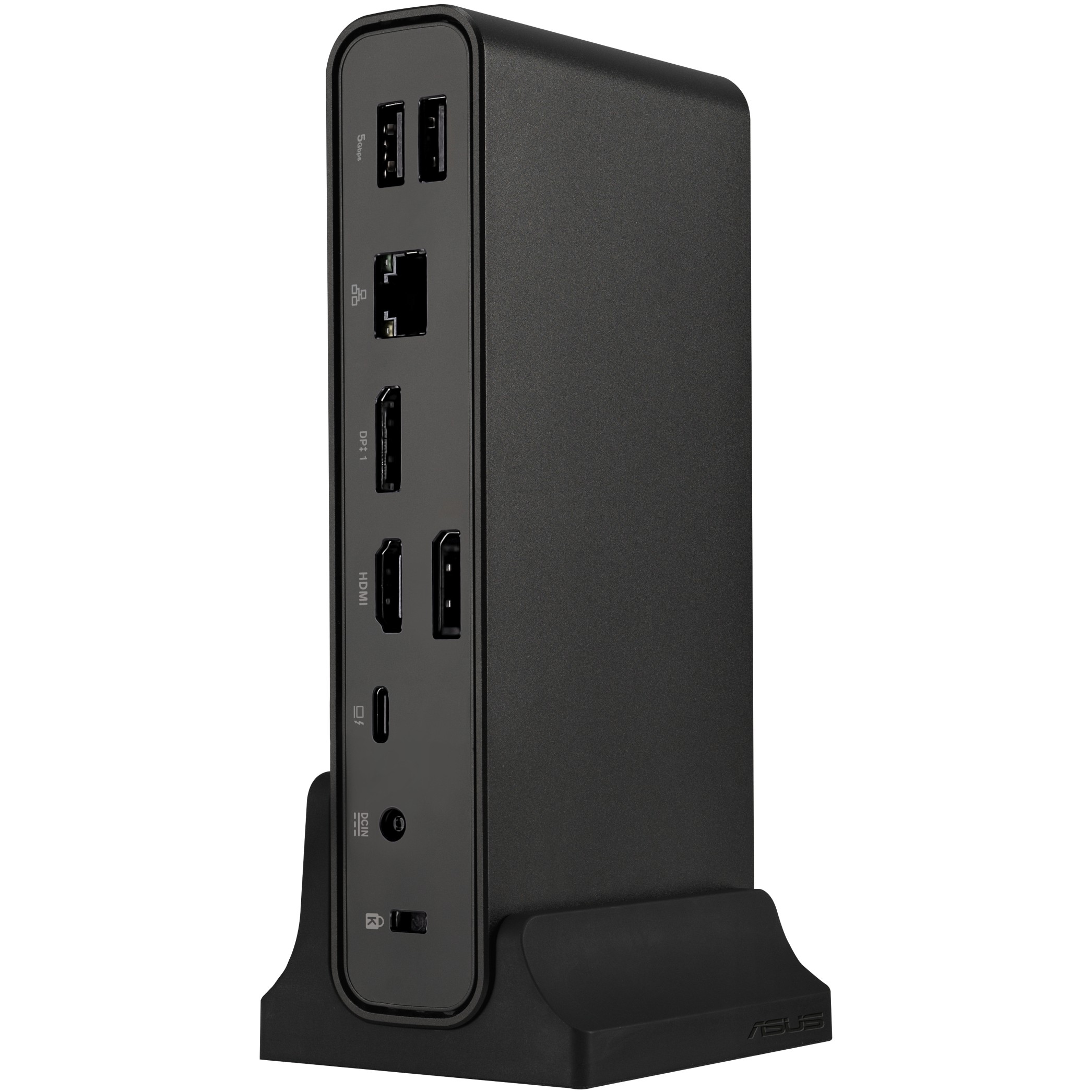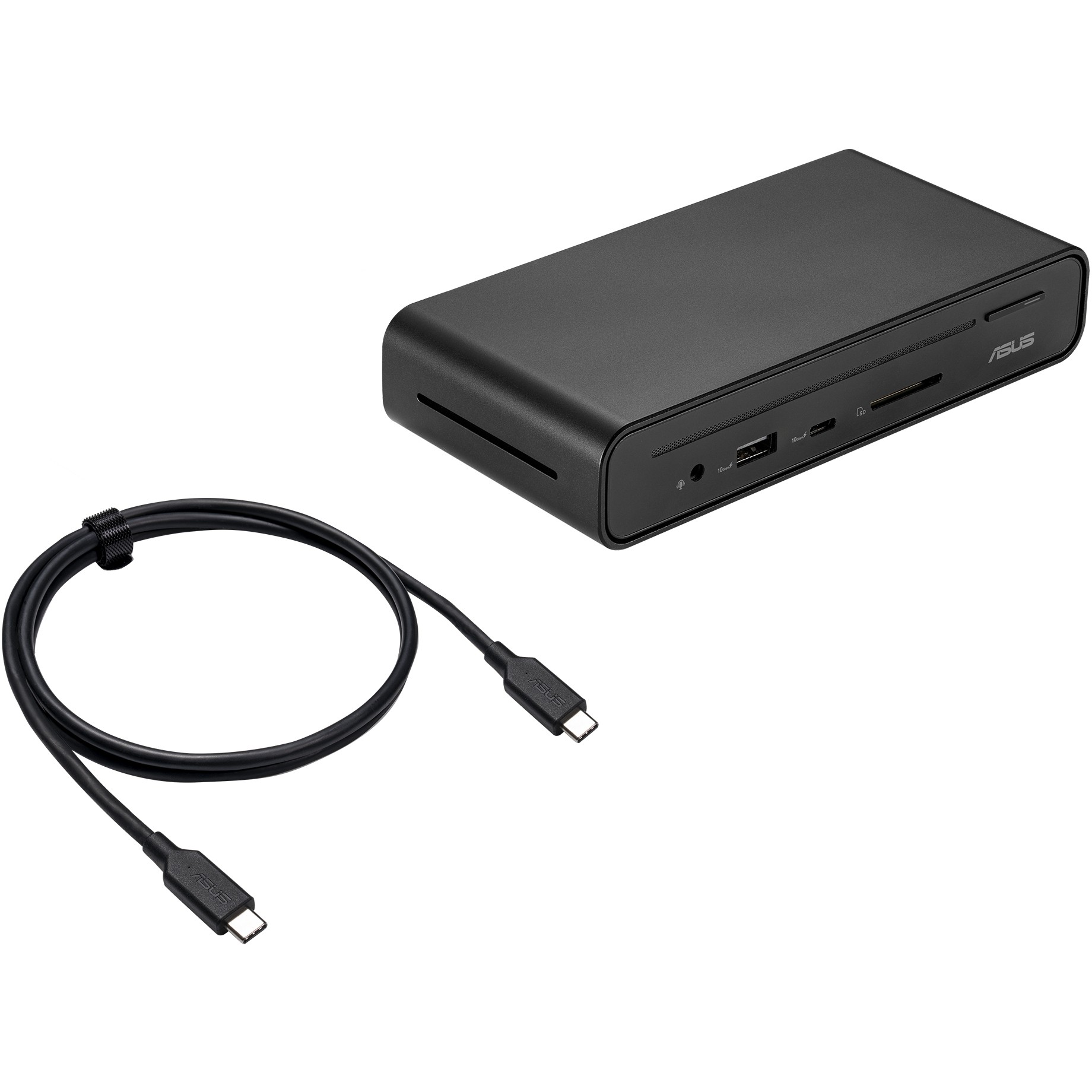 ASUS Triple Display USB-C Dock Duo DC301. Übertragungstechnik: Kabelgebunden, USB-Stromversorgung bis zu: 90 W. Ethernet LAN Datentransferraten: 1000 Mbit/s. Produktfarbe: Schwarz, Kompatible Speicherkarten: SD, Datenübertragungsrate: 10 Gbit/s. Energiequelle: Gleichstrom, Eingangsstrom: 7.5 A, Stromversorgung: 150 W. Breite: 160 mm, Tiefe: 80 mm, Höhe: 32 mm
