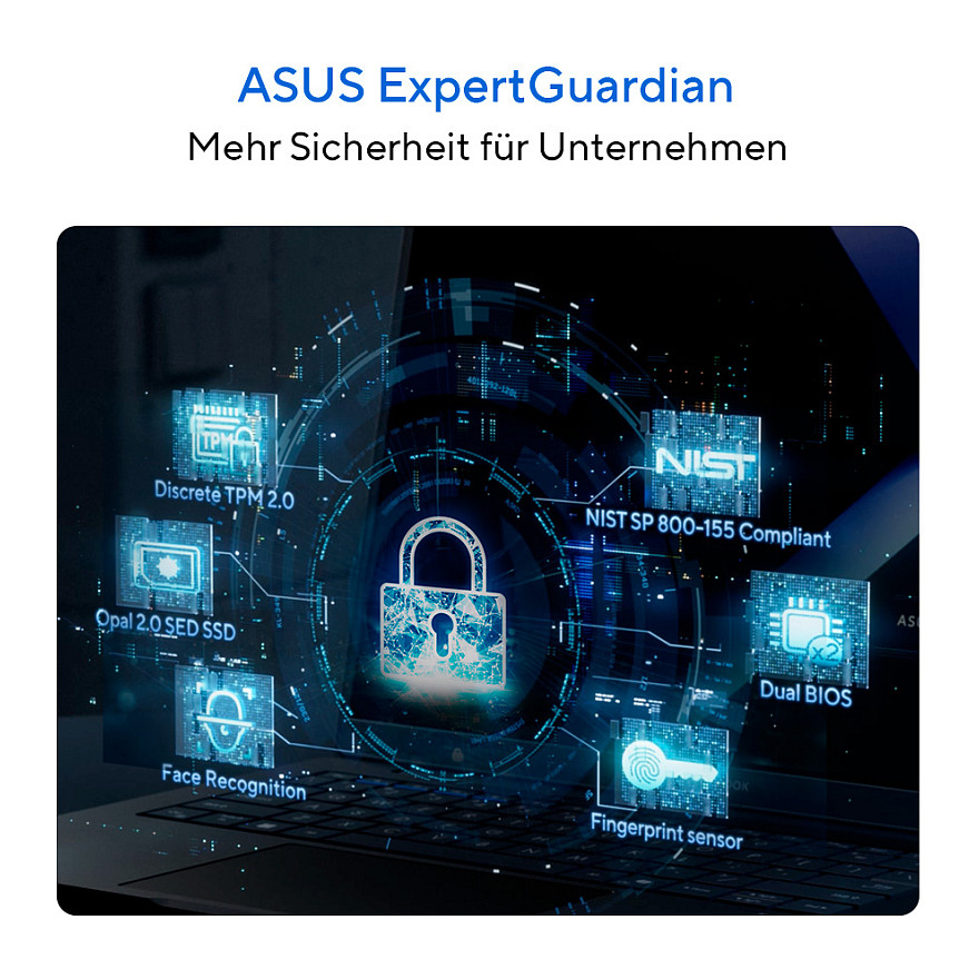 ASUS ExpertGuardian bietet eine Reihe von fortschrittlichen Technologien zur Verbesserung der Cyber-Resilienz von Unternehmen. Ausgestattet mit Dual BIOS ROM, Opal 2.0 SED SSD, NIST SP 800-155-konformem BIOS, integriertem Sensor für das Eindringen in das Gehäuse und Windows 11 Secured-Core PC-Technologien bietet es einen umfassenden Schutz, der auf der Hardware-Ebene beginnt und sich über Software und Dienste erstreckt.