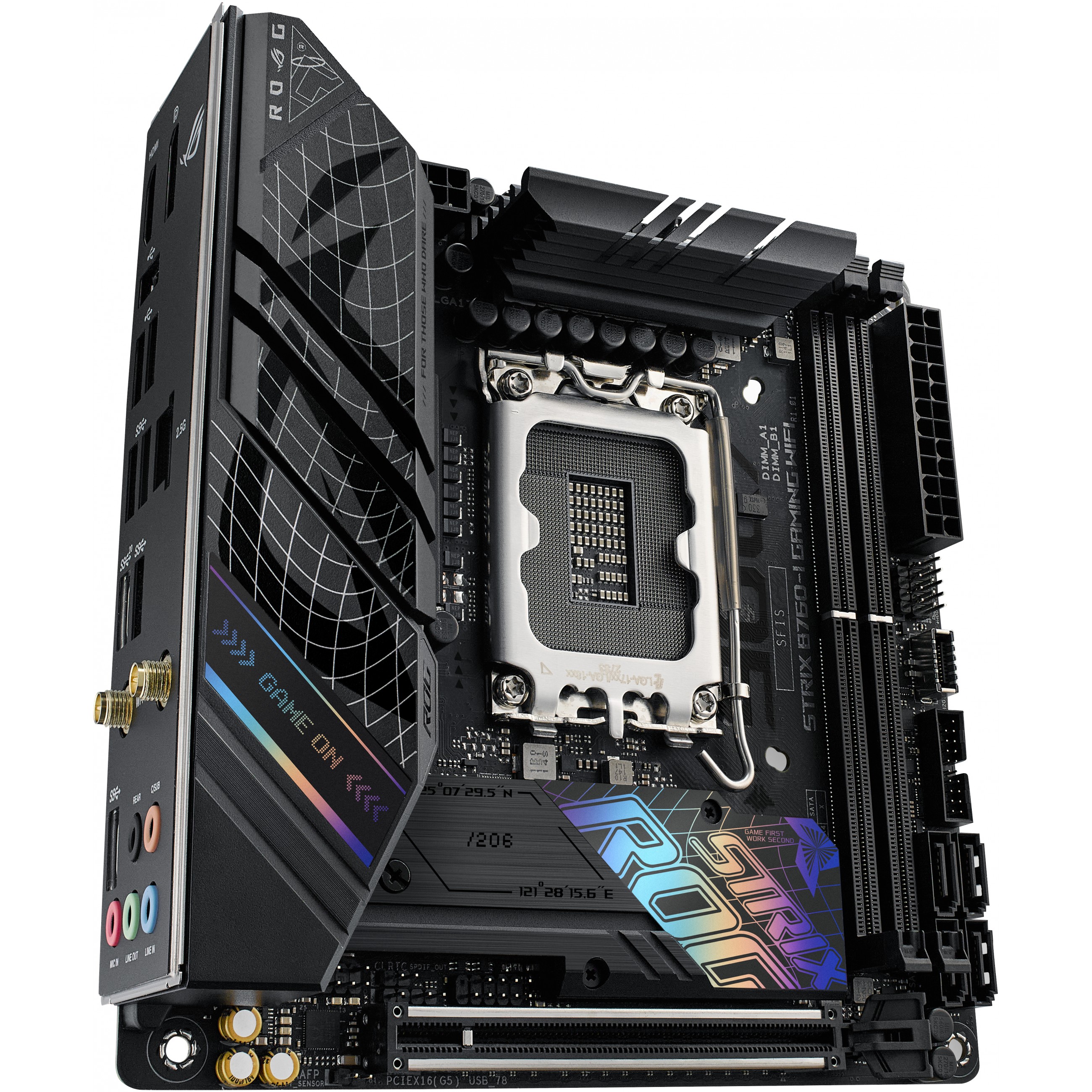 ASUS ROG STRIX B760-I GAMING WIFI. Prozessorhersteller: Intel, Prozessorsockel: LGA 1700, Kompatible Prozessoren: Intel® Celeron®, Intel® Core™ i3, Intel® Core™ i5, Intel® Core™ i7, Intel® Core™ i9,.... Unterstützte Arbeitsspeicher: DDR5-SDRAM, RAM-Speicher maximal: 96 GB, Arbeitsspeicher Typ: DIMM. Unterstützte Speicherlaufwerk-Schnittstellen: M.2, SATA III, Unterstützte Speicherlaufwerke: HDD & SSD, RAID Level: 0, 1, 5, 10. Ethernet Schnittstellen Typ: 2.5 Gigabit Ethernet, Top WLAN-Standard: Wi-Fi 6E (802.11ax), WLAN-Standards: 802.11a, 802.11b, 802.11g, Wi-Fi 4 (802.11n), Wi-Fi 5 (802.11ac), Wi-Fi 6 (802.11ax), Wi-Fi 6E.... Komponente für: PC, Motherboardformfaktor: mini ITX, Motherboard Chipsatz Familie: Intel