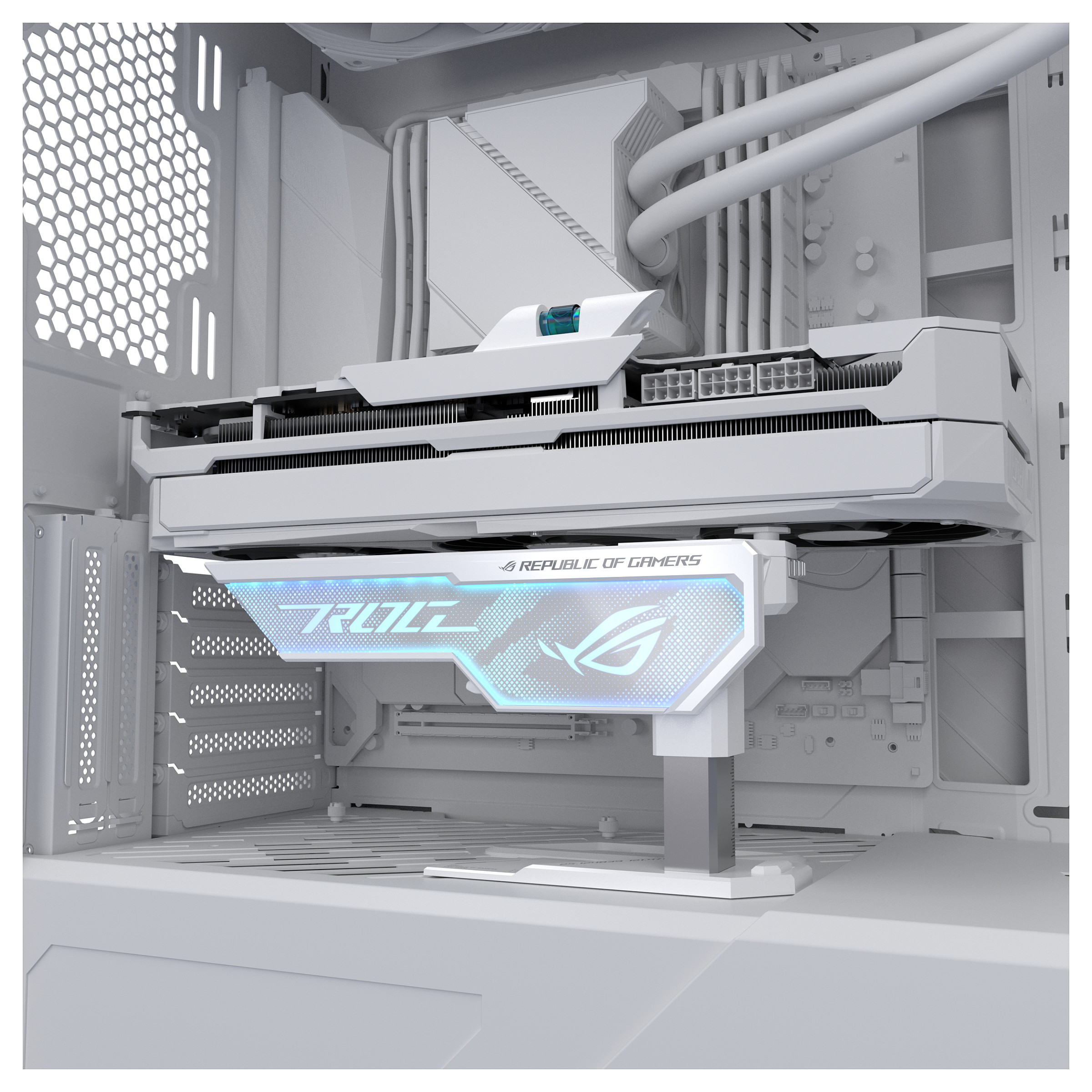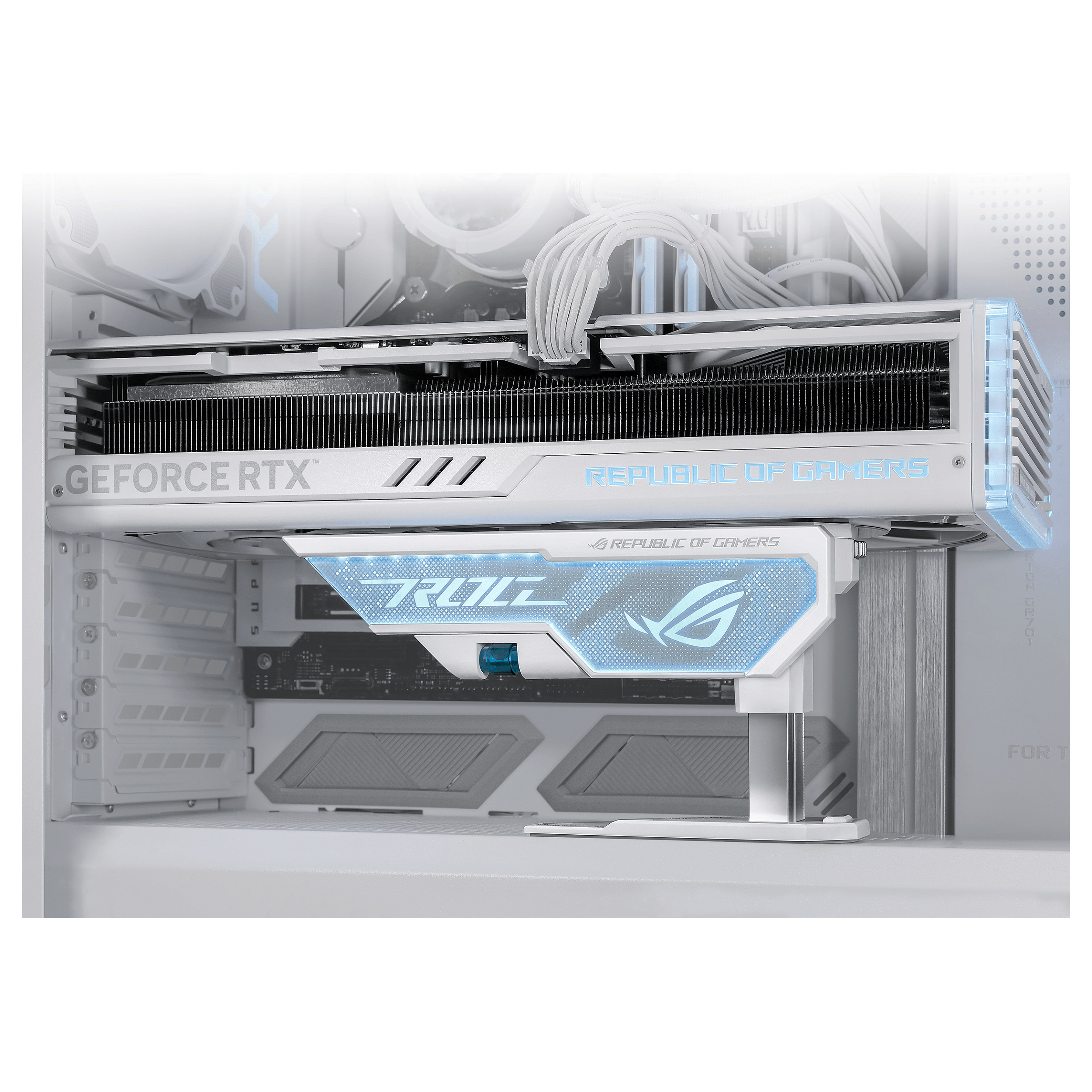 Der ROG Herculx verfügt über die strukturelle Integrität, um selbst die Last der schwersten Grafikkarte zu tragen. Die werkzeuglose Installation, die präzise Einstellung und die anpassbare RGB-Beleuchtung werden in einem platzsparenden Design kombiniert, das sich leicht einschieben lässt, um deine Investition in die GPU-Leistung zu schützen.