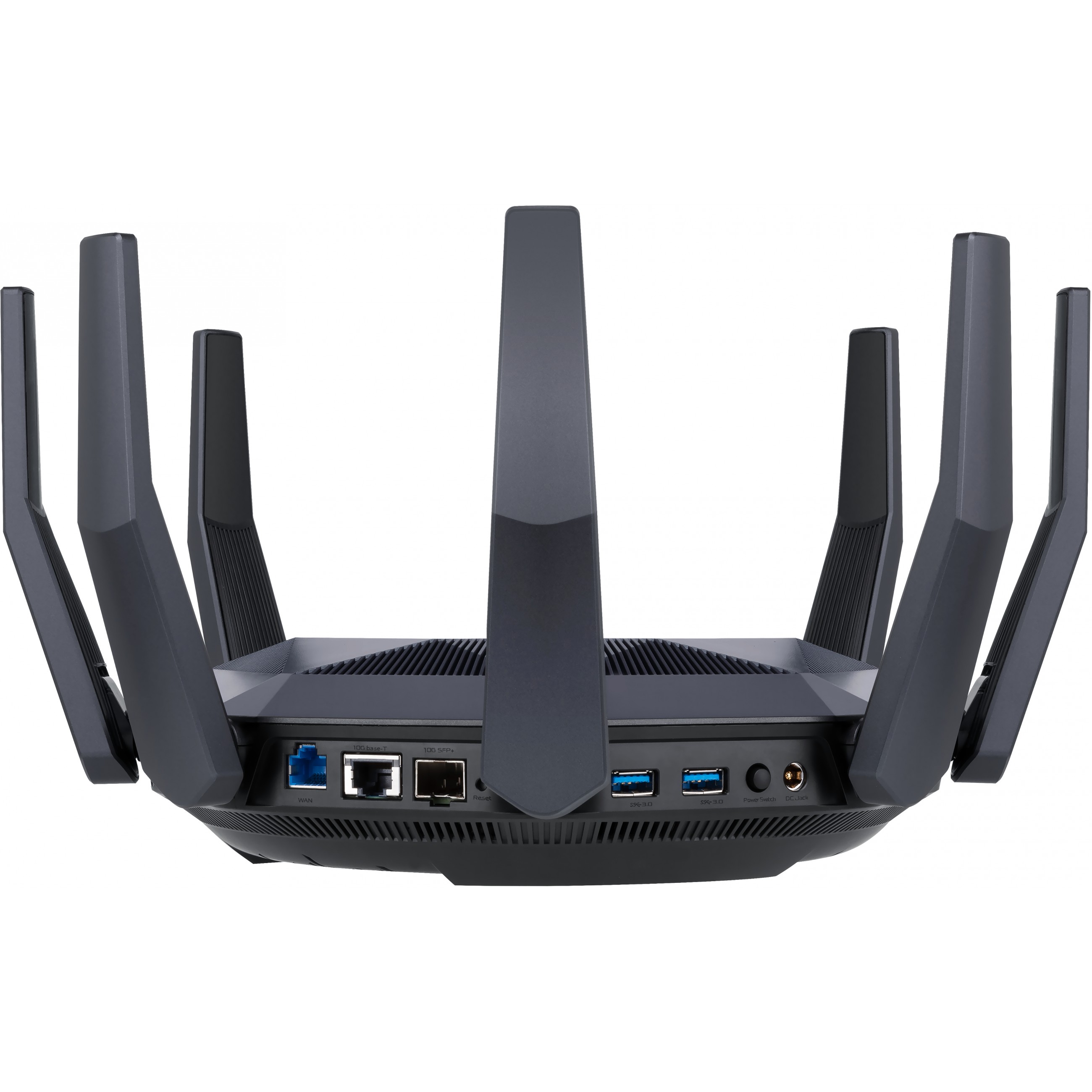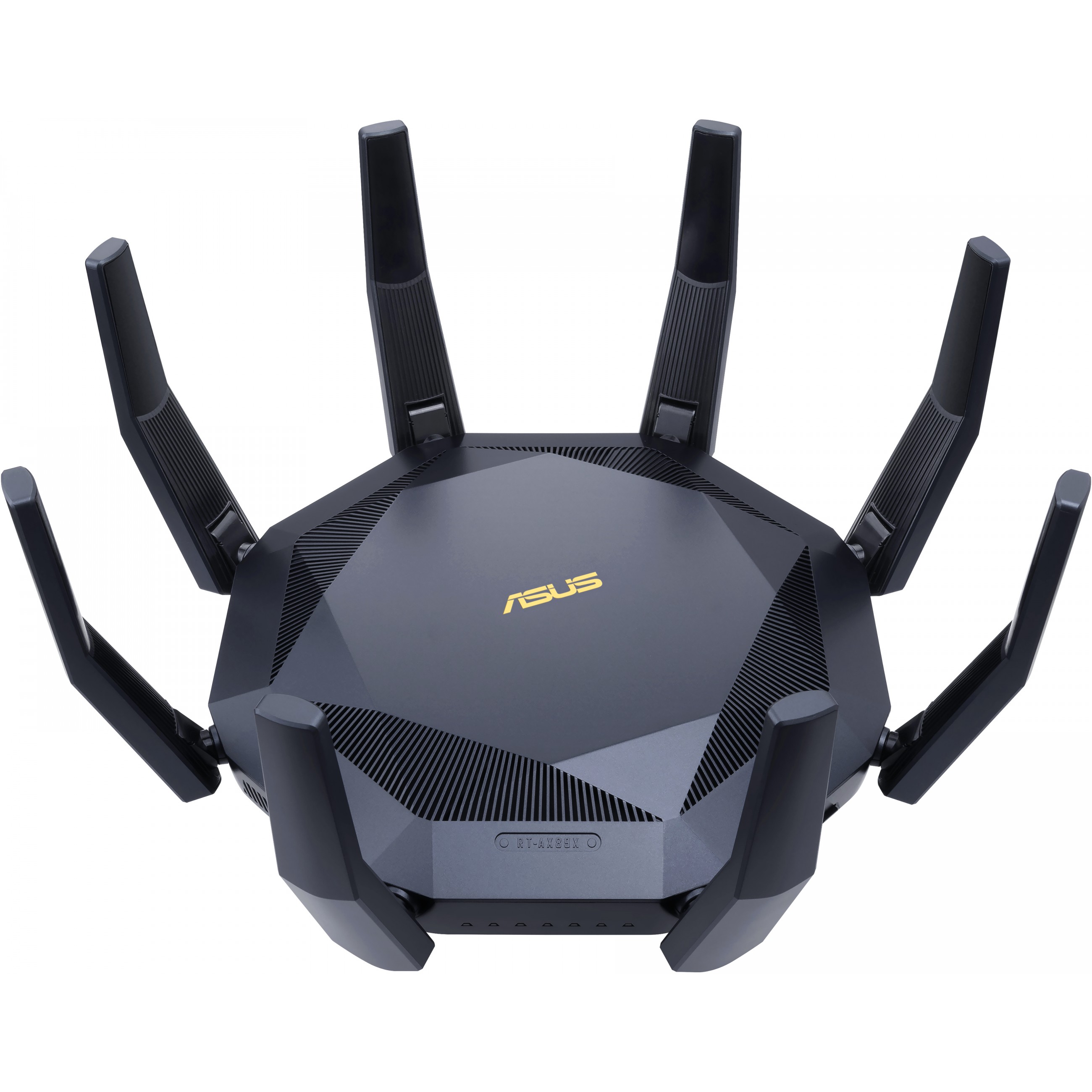 Der RT-AX89X ist ein 8x8 Dual-Band WLAN-Router mit 1024-QAM für deutlich schnellere drahtlose Verbindungen. Mit einer Gesamtnetzwerkgeschwindigkeit von etwa 6000Mbit/s – 1148Mbit/s im 2,4 GHz-Band und 4804Mbit/s im 5 GHz-Band – ist der RT-AX89X 2,8x schneller als 4x4 Dual-Band-Router, die den 802.11ac-Standard nutzen.