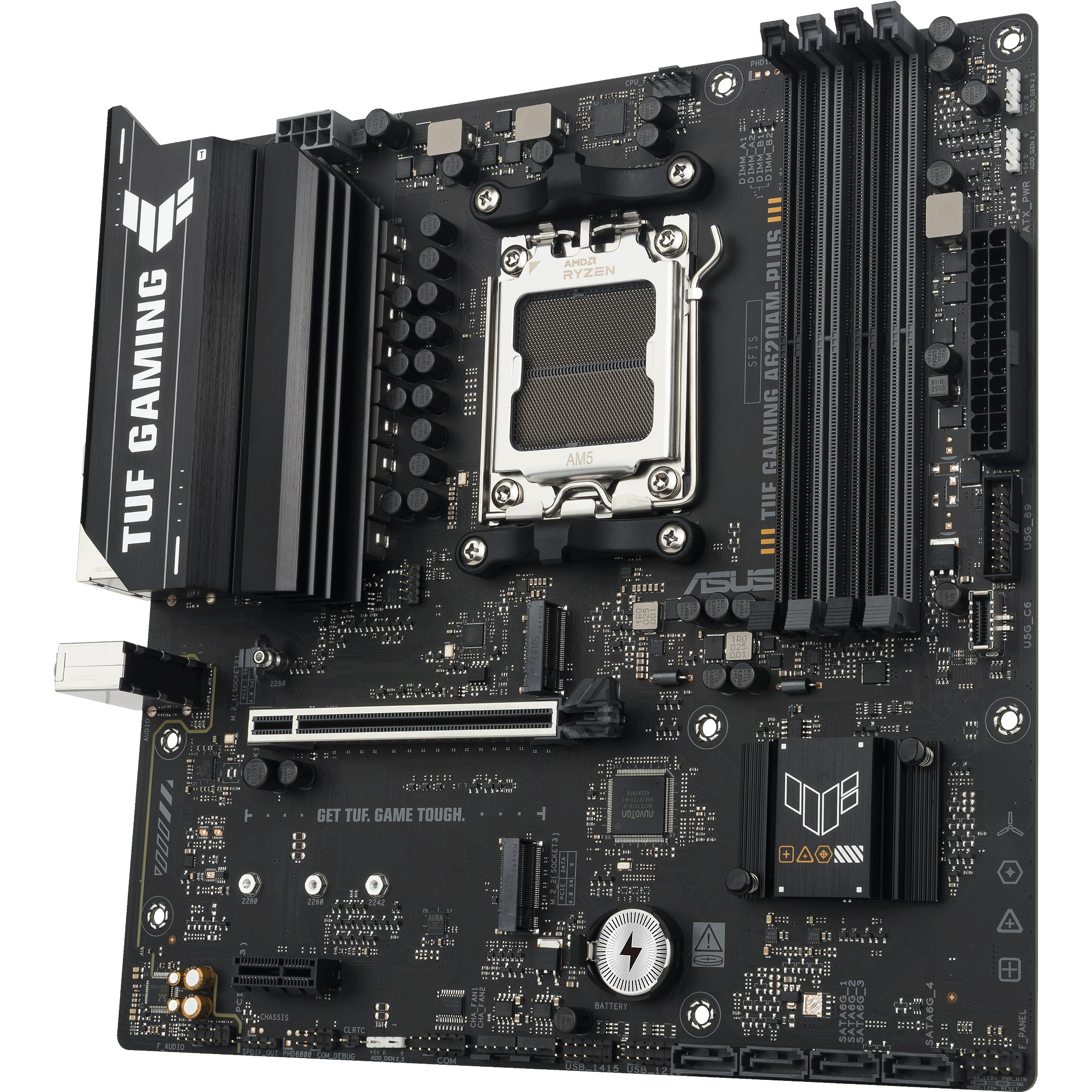 Das ASUS TUF GAMING A620AM-PLUS nimmt alle wesentlichen Elemente der neuesten AMD Ryzen™ Prozessoren auf und kombiniert sie mit spieletauglichen Funktionen und bewährter Haltbarkeit. Mit Komponenten in Militärqualität, einer verbesserten Stromversorgungslösung und einem umfassenden Kühlsystem übertrifft dieses Mainboard alle Erwartungen und bietet eine felsenfeste und stabile Leistung für Gaming-Marathons. TUF GAMING-Mainboards werden außerdem strengen Härtetests unterzogen, um sicherzustellen, dass sie Bedingungen standhalten, bei denen andere versagen könnten. Diese Plattform bietet die Leistung und Konnektivität, die fortschrittliche KI-PC-Anwendungen erfordern.