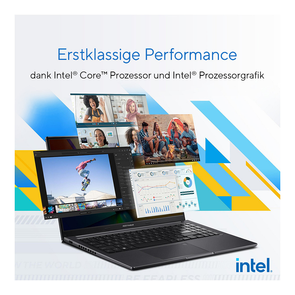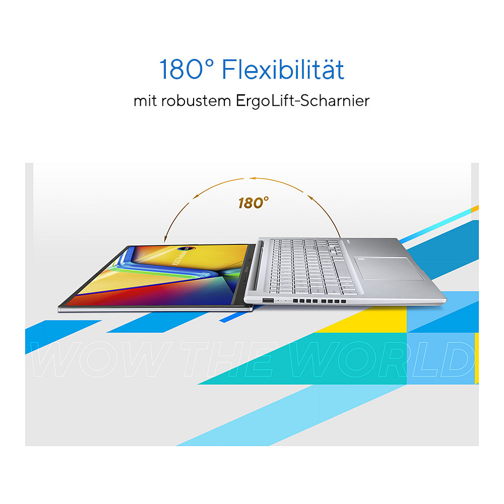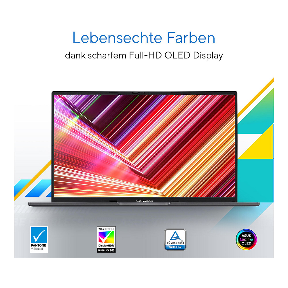 Das ASUS Vivobook 15 OLED kombiniert starke Leistung mit einem herausragenden Display und hoher Flexibilität. Die Rechenleistung wird von einem bis zu Intel® Core™ i7 Prozessor der 13. Generation, dem integrierten Grafikprozessor und einem großen Arbeitsspeicher unterstützt. Das Full-HD OLED-Panel sorgt für schärfste Bilder in brillanten Farben und macht jeden Moment zu einem besonderen Erlebnis. Das 180° Scharnier und die hohe Sicherheit des Vivobook 15 OLED bieten Dir zudem enorme Flexibilität im Alltag. Mit diesem Notebook bist Du für jeden Moment gerüstet.