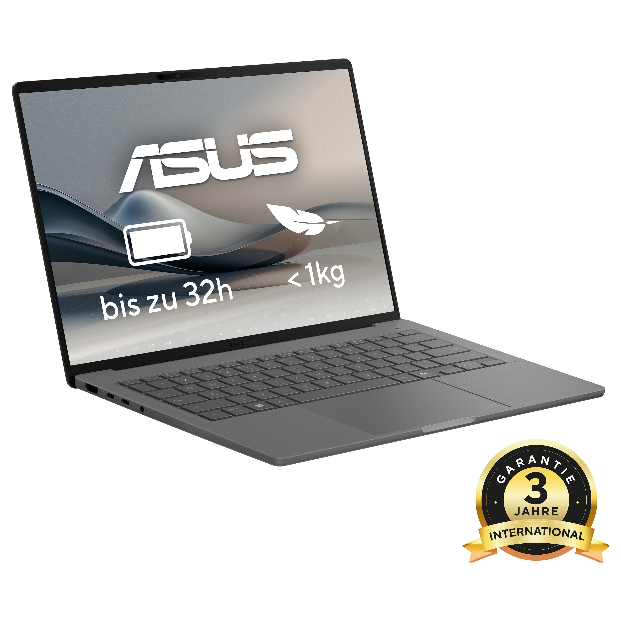 Das Zenbook A14 ist ein Meisterwerk der Symbiose aus elegantem Design und müheloser Mobilität. Mit einem Gewicht von unter 1kg wird es zum perfekten Begleiter für alle, die viel unterwegs sind, ohne auf Stil und Leistung verzichten zu wollen. Dieses Notebook wurde strengen Militärtests unterzogen und meistert so auch extreme Bedingungen problemlos. Genieße die Freiheit, das Zenbook A14 überallhin mitzunehmen, ohne sich Gedanken über sein Gewicht oder seine Widerstandsfähigkeit machen zu müssen. Arbeite produktiv und stilvoll, wo immer Du willst, denn dieses Zenbook ist so leicht, dass Du es kaum spüren wirst.