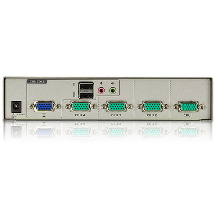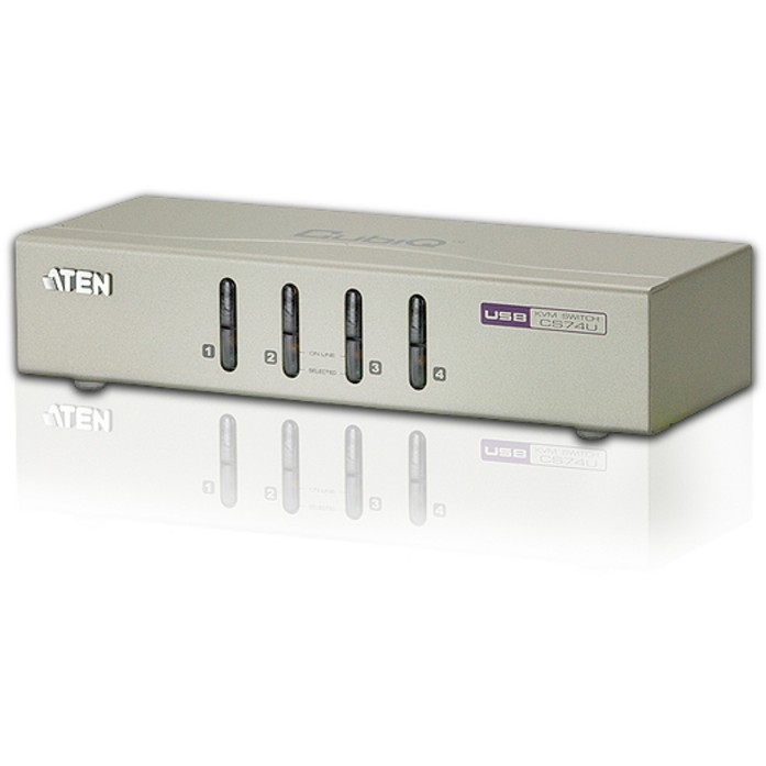 Der USB-KVM-Switch CS74U ist ein Gerät zur Schreibtischinstallation, das es ermöglicht, vier Computer von einer einzigen KVM-Konsole (Tastatur und Maus sowie VGA-Monitor) zu steuern.