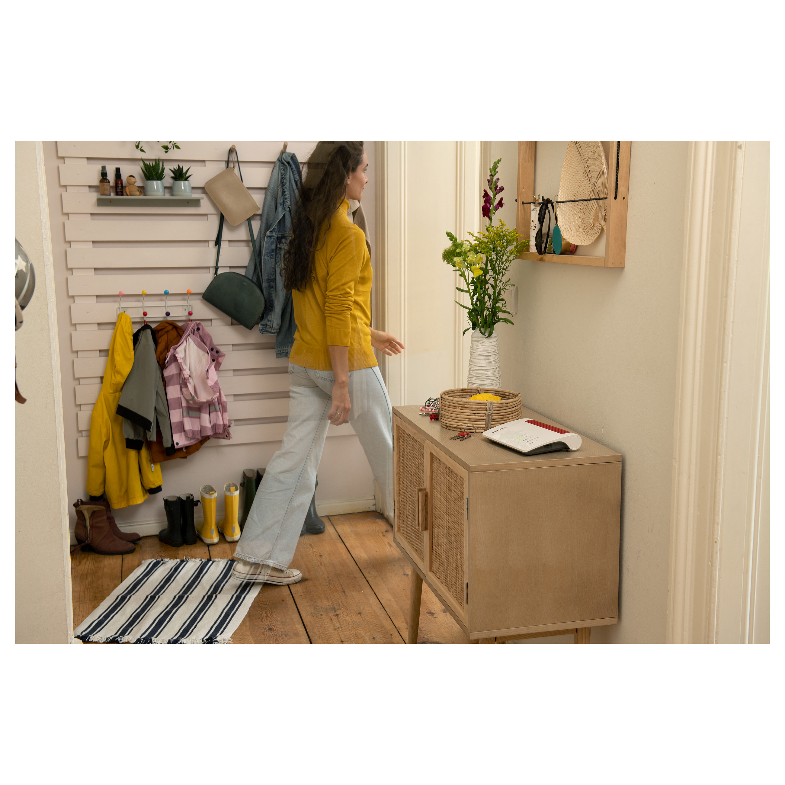 Damit Videos, Musik und Fotos im Heimnetz nahtlos bis in den letzten Winkel jedes Zimmers gelangen, setzt die FRITZ!Box 5530 auf WLAN Mesh. Die verteilten FRITZ!-Geräte arbeiten in einem einzigen Netz, tauschen sich untereinander aus und optimieren die Leistung aller WLAN-Geräte.