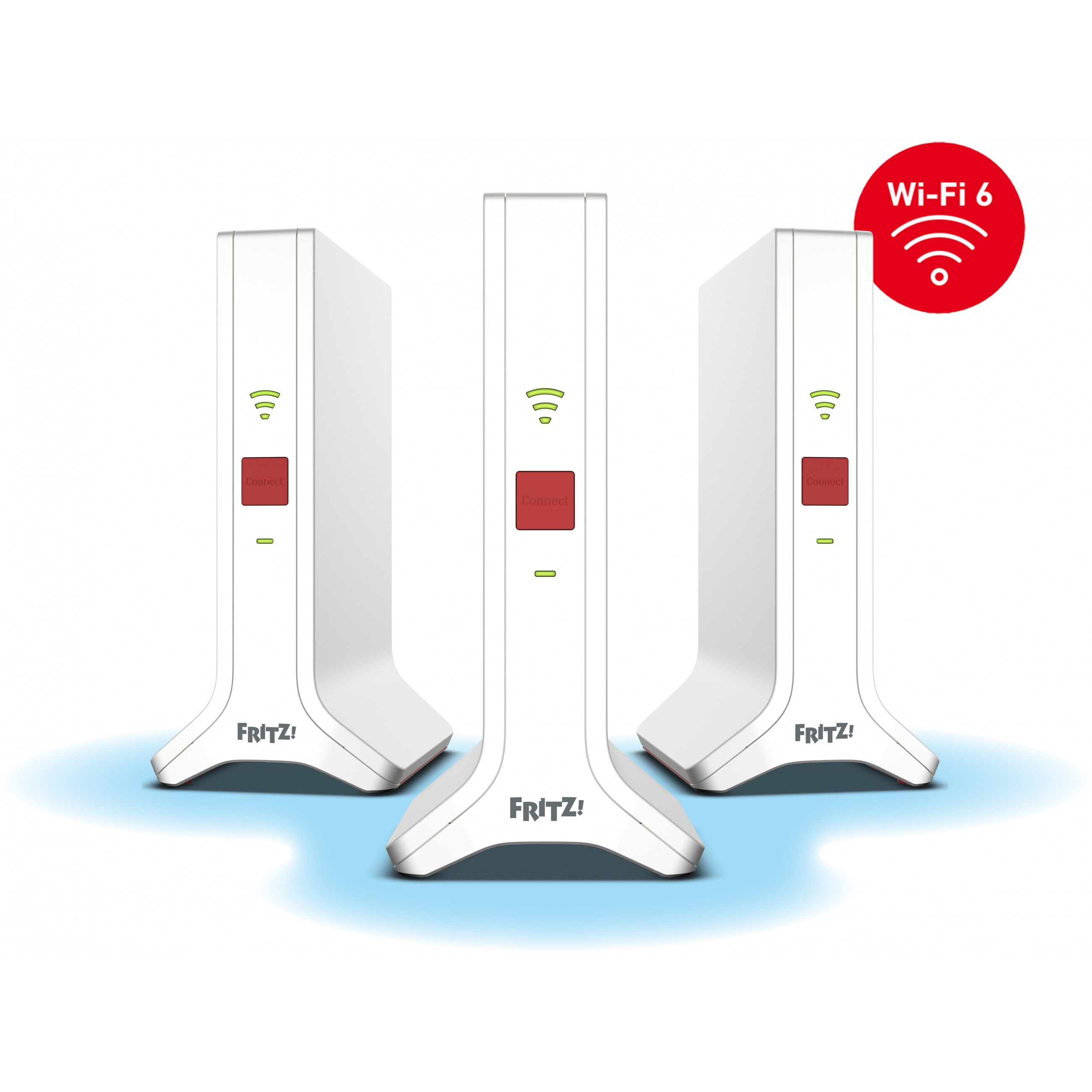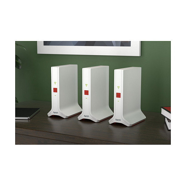 Das Set lässt sich direkt per LAN an einen beliebigen Router oder ein Glasfasermodem (ONT) anschließen und stellt dort sämtliche Funktionen des FRITZ! Mesh bereit. Zudem kann das Set wie bislang gewohnt auch per WLAN an einer FRITZ!Box genutzt werden. Für Highspeed sorgt der Gigabit-LAN-Anschluss der einzelnen FRITZ!Repeater. Netzwerkfähige Geräte ohne WLAN können so unkompliziert ins Heimnetz integriert werden.