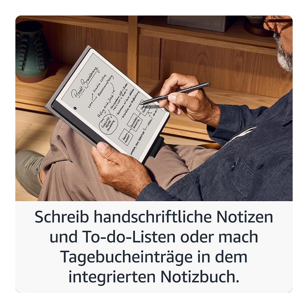 Komfortables Lesen und Schreiben, mit unserem größten Kindle-Display. Mit jedem Strich des Stifts auf dem texturierten Bildschirm kannst du sehen, fühlen und hören, wie du deine Gedanken schriftlich festhältst. Das Schreiben auf Kindle Scribe fühlt sich an wie auf echtem Papier. Lass Active Canvas in deinen Büchern Platz für Notizen schaffen und nutze das integrierte Notizbuch. Importiere PDFs und andere Dokumente und markiere Text darin.