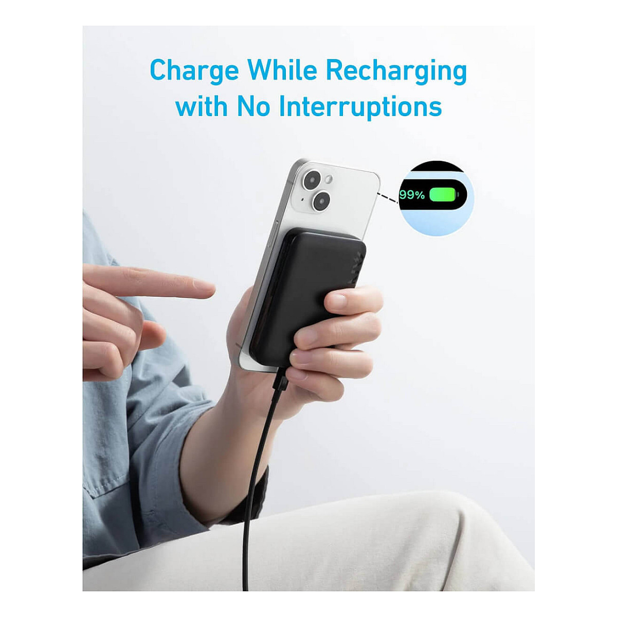 Anker 321 MagGo 5000. Akku-/Batteriekapazität: 5000 mAh, Kabelloses Aufladen. Gesamte Ausgangsleistung: 120 W, Ausgangsstrom: 2,4 A. Produktfarbe: Schwarz