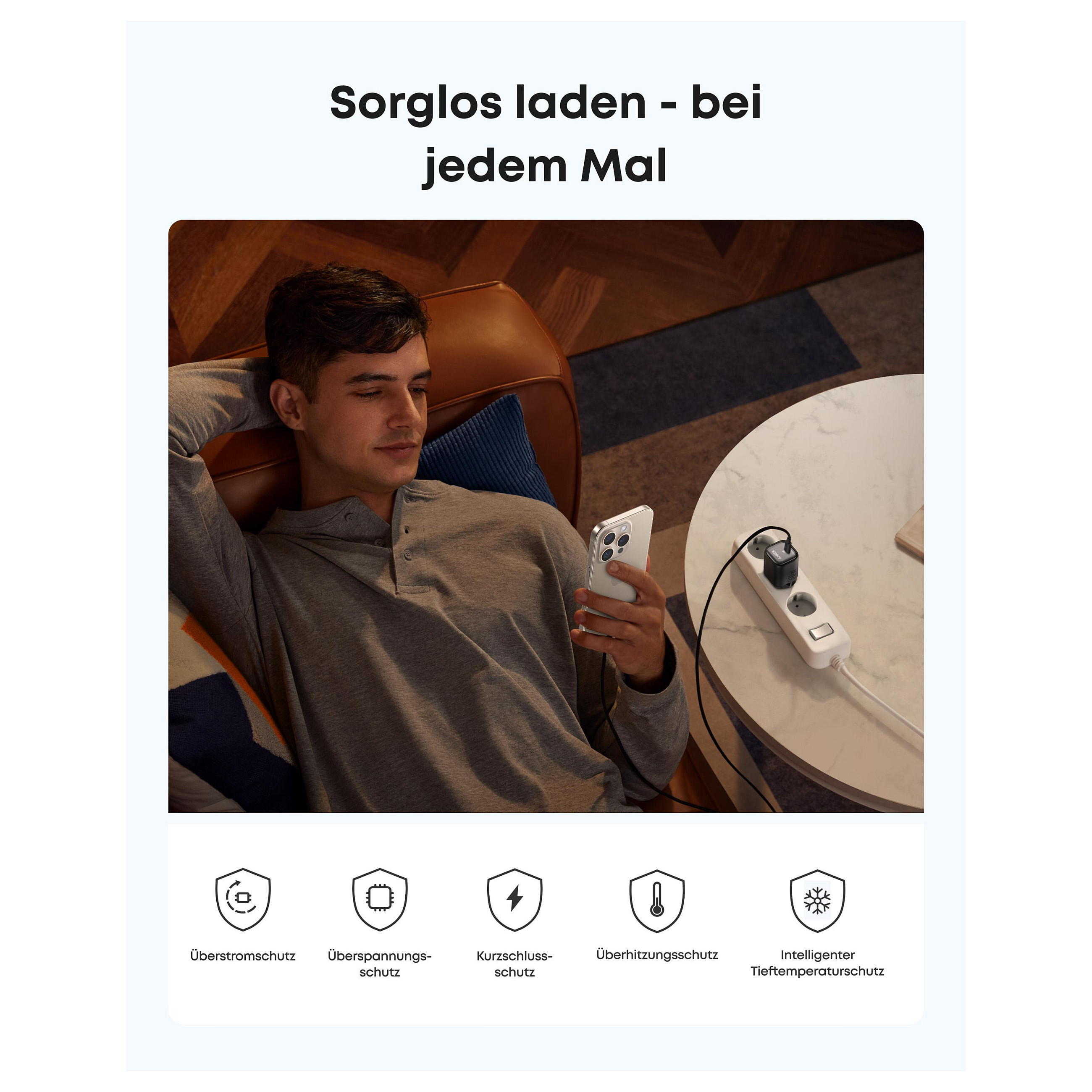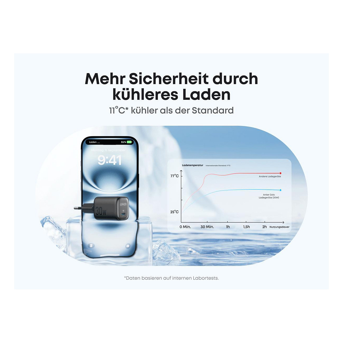 Anker Zolo 30W kompaktes GaN Ladegerät, PIQ 3.0 PPS Schnellladen, exklusive