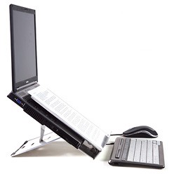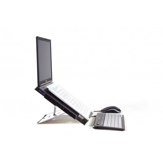 Der Ergo-Q 260 lässt sich problemlos mit nur zwei Handgriffen auseinanderklappen und aufstellen. Dazu einfach das runde Verbindungsstück in eine der fünf Perforierungen stecken. Der integrierte Dokumentenhalter wird mühelos nach vorne geklappt, sodass Sie Ihren Laptop auf die Schaumstoffpolster heben können. Die stabile Standfläche und die Anti-Rutschfüße auf der Unterseite, versprechen auf jedem Untergrund ein festes Arbeits-Setup für Ihren Laptop.Laptopständer Ergo-Q260