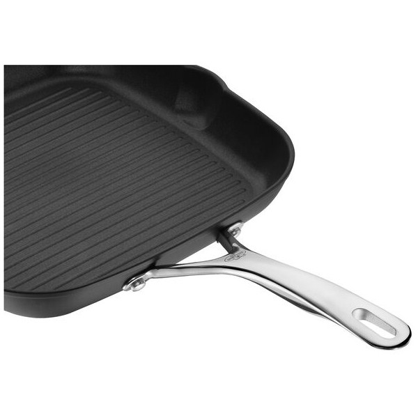 BALLARINI 75002-484. Form: Rund, Typ: Grillpfanne, Produktfarbe: Schwarz, Edelstahl. Durchmesser: 28 cm, Breite: 490 mm, Höhe: 70 mm. Menge pro Packung: 1 Stück(e). Enthält nicht: Perfluoroctansäure (PFOA), Polytetrafluorethylen (PTFE)