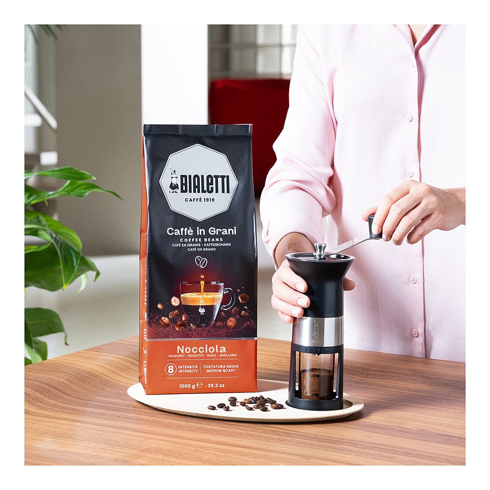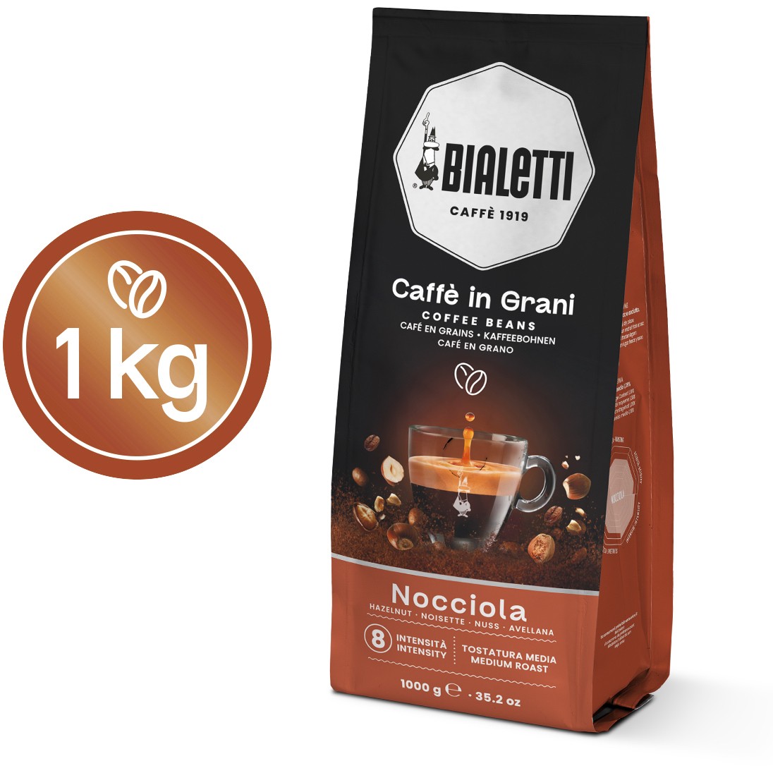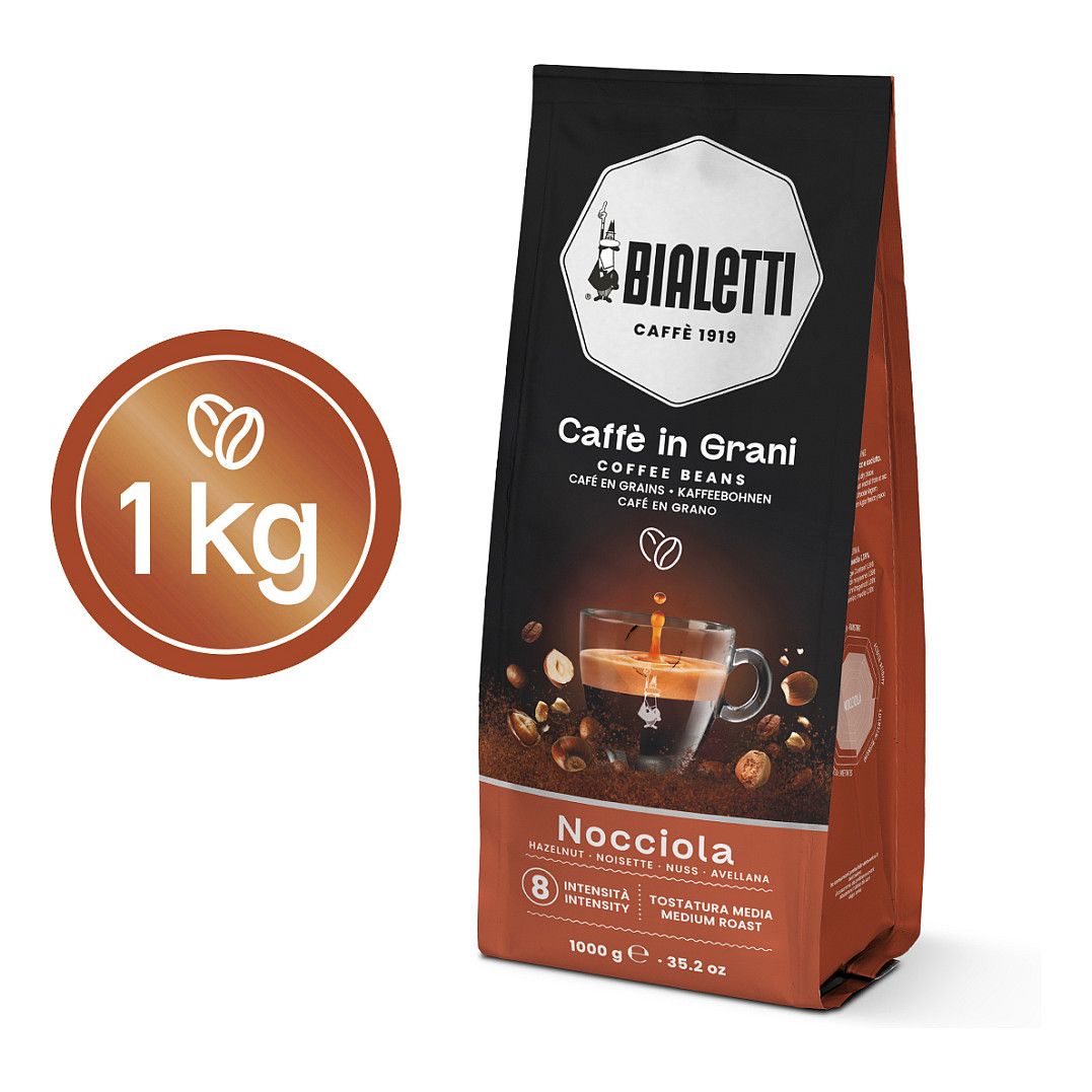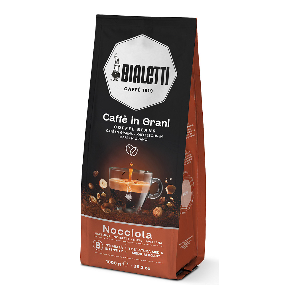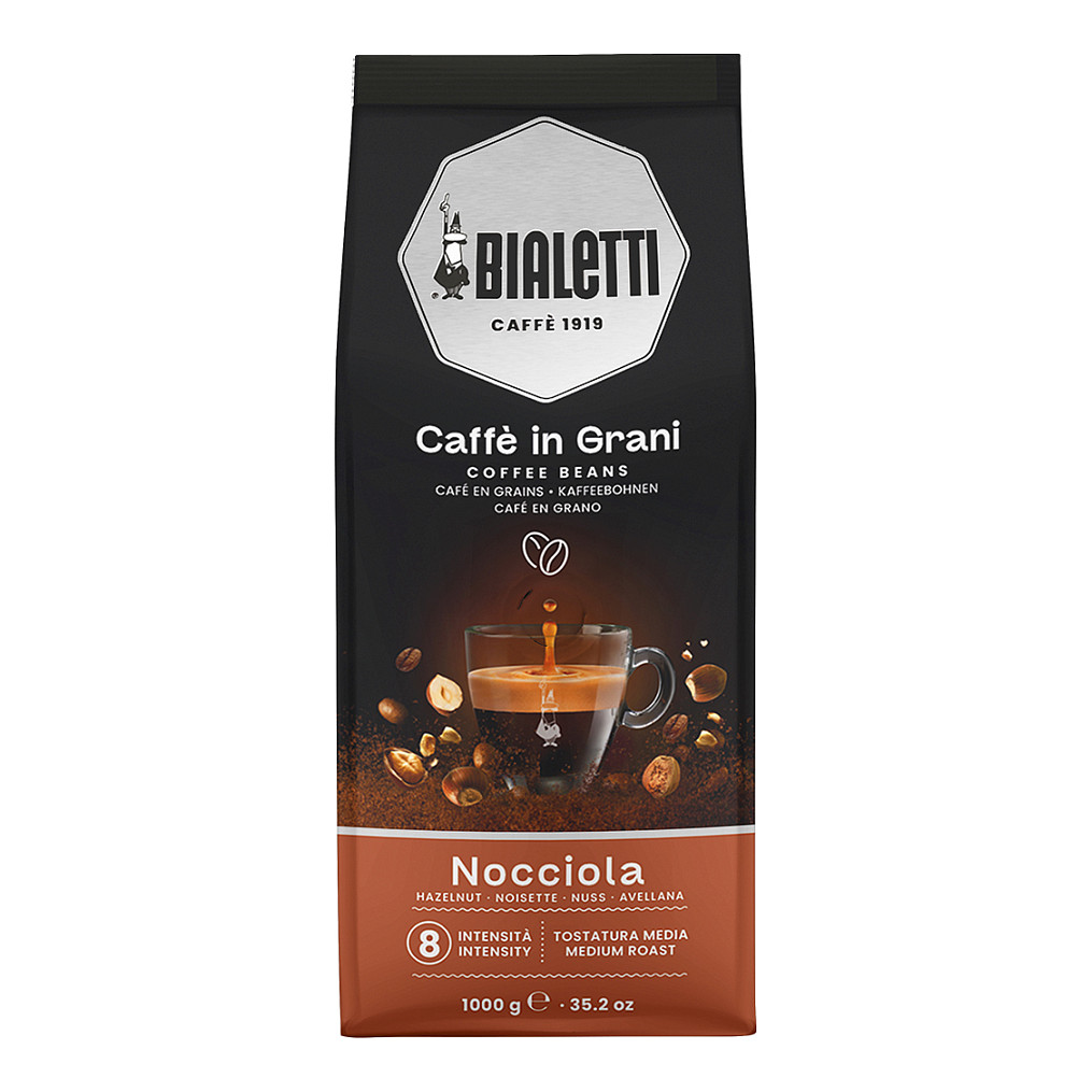 Bialetti Nocciola. Kapazität: 1 kg, Getränkearten: Espresso, Stufe der Kaffeeröstung: Medium geröstet. Verpackungsbreite: 140 mm, Verpackungstiefe: 80 mm, Verpackungshöhe: 350 mm