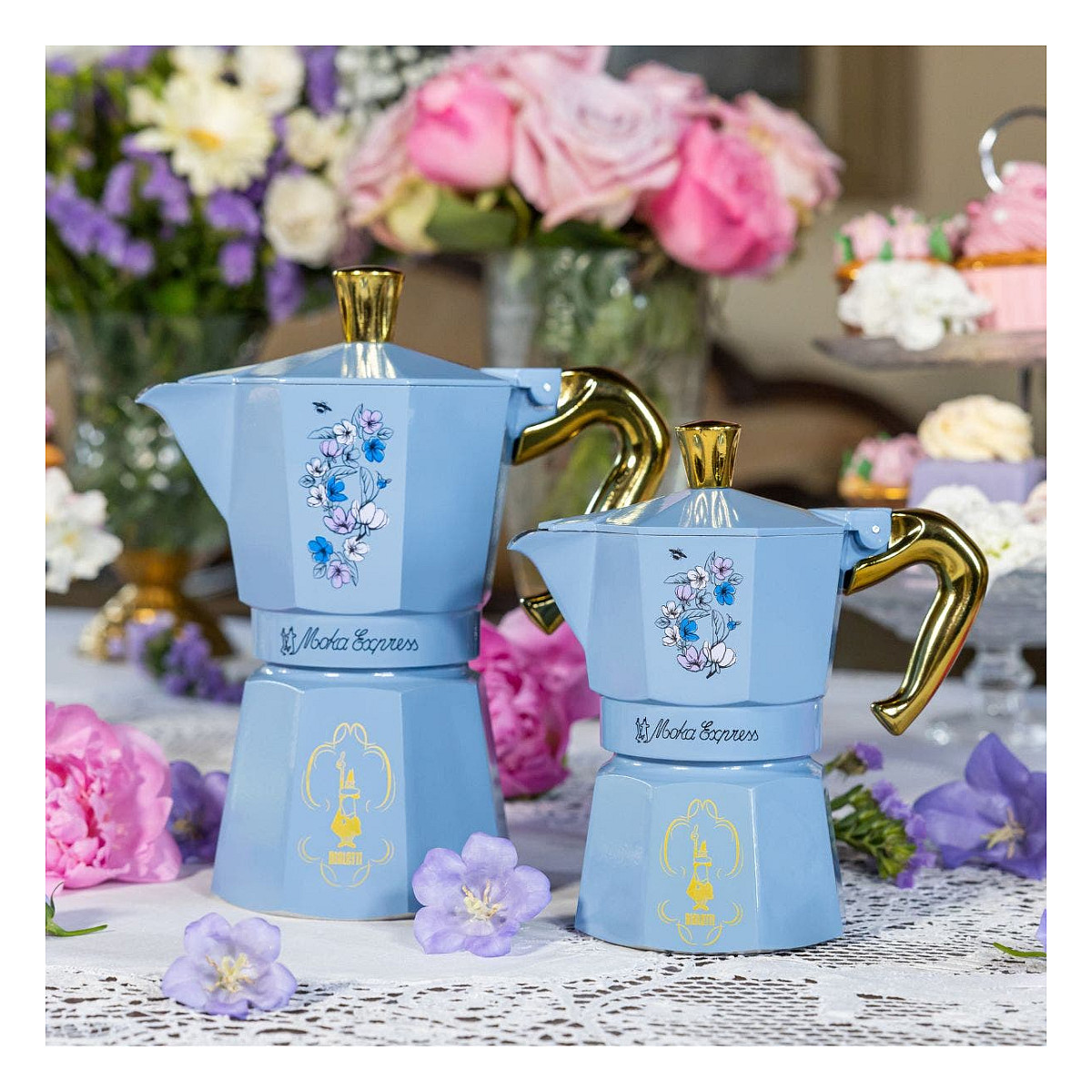 Bialetti Bridgerton. Produkttyp: Mokka-Kanne, Fassungsvermögen: 0,13 l, Produktfarbe: Blau, Gold. Breite: 179 mm, Höhe: 140 mm. Menge pro Packung: 1 Stück(e)