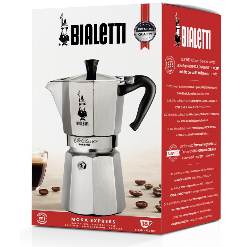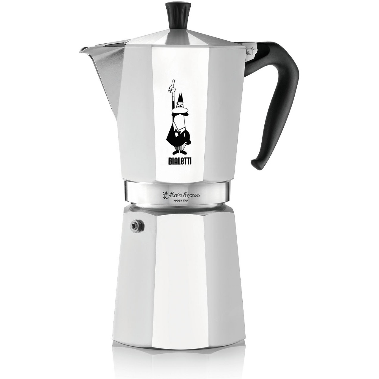Bialetti Moka Express. Produkttyp: Mokka-Kanne, Produktfarbe: Aluminium, Schwarz, Gehäusematerial: Aluminium. Menge pro Packung: 1 Stück(e). Produkte pro Palette: 120 Stück(e), Gewicht Versandkarton: 9 kg, Anzahl Produkte pro Versandkarton: 6 Stück(e)