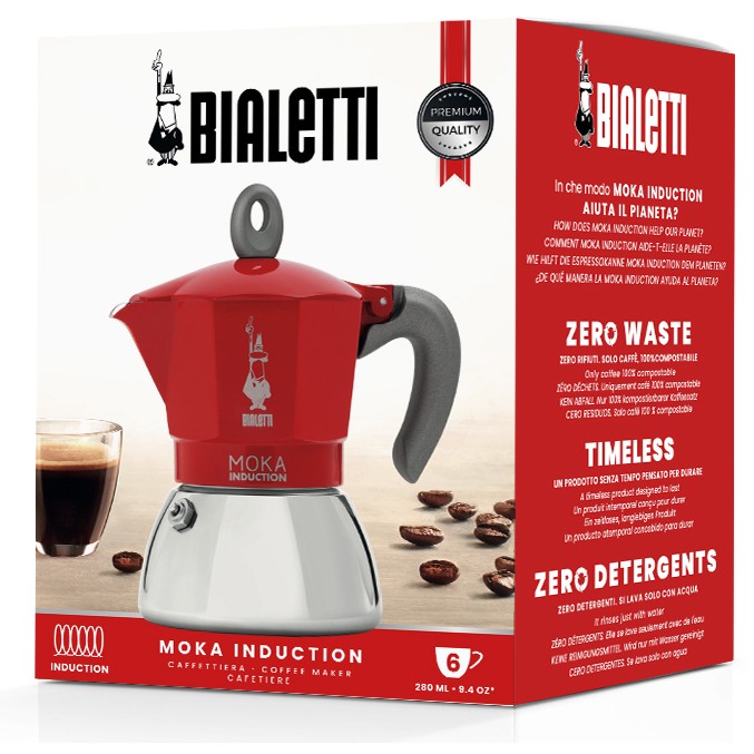 Bialetti Moka Induktion. Produkttyp: Mokka-Kanne, Fassungsvermögen: 0,28 l, Produktfarbe: Rot, Edelstahl. Menge pro Packung: 1 Stück(e)
