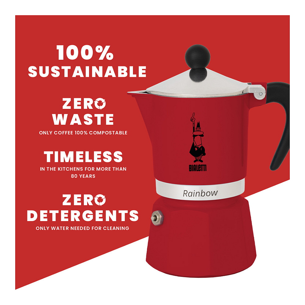 Bialetti Rainbow. Volumen (l): 0,06 l, Material: Aluminium, Thermoplast, Produktfarbe: Rot. Höhe: 140 mm, Sockeldurchmesser: 6,2 cm
