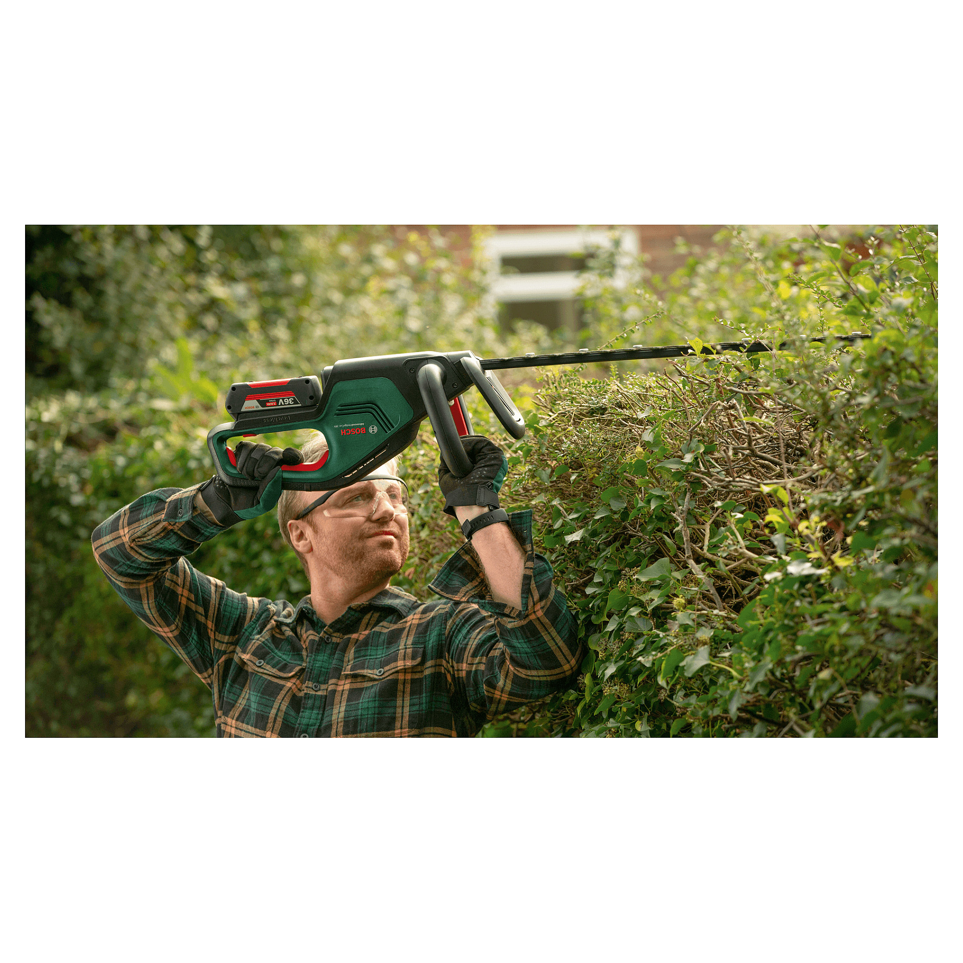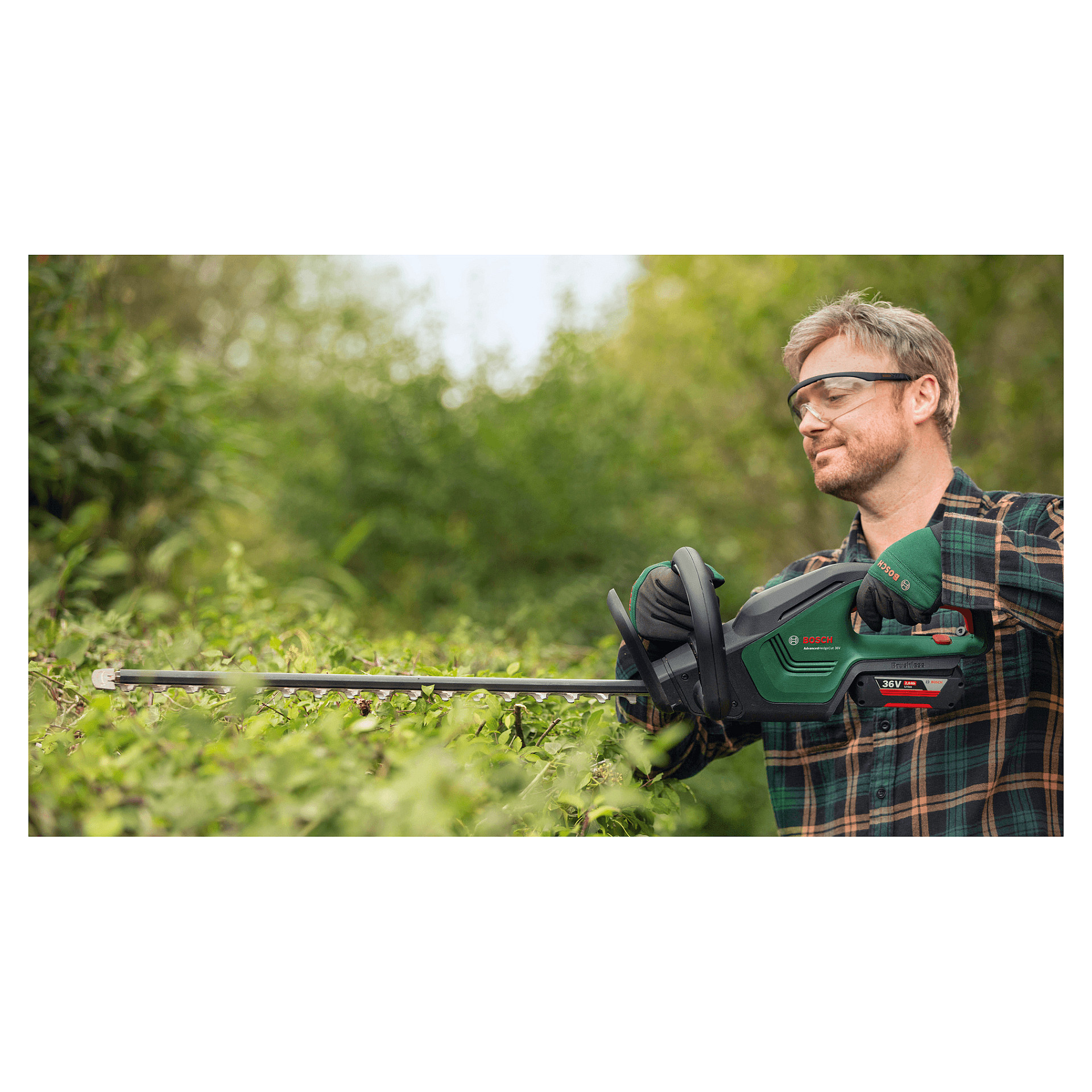 Bosch AdvancedHedgeCut 36V-65-28. Größe des Blattes: 65 cm, Klingentyp: Einzelne Klinge, Unsicherheit K: 1,5 m/s². Energiequelle: Akku, Akku-/Batteriespannung: 36 V, Batteriekapazität: 2 Ah. Gewicht: 3,5 kg, Breite: 240 mm, Tiefe: 1185 mm