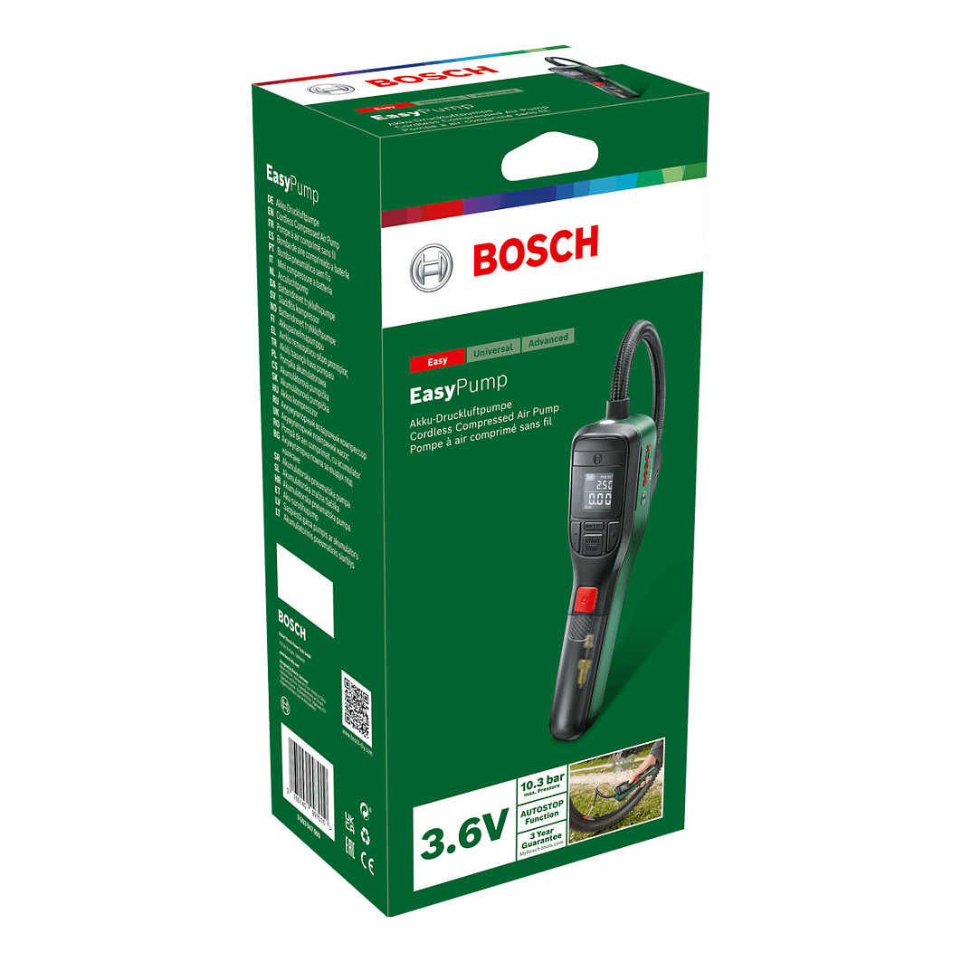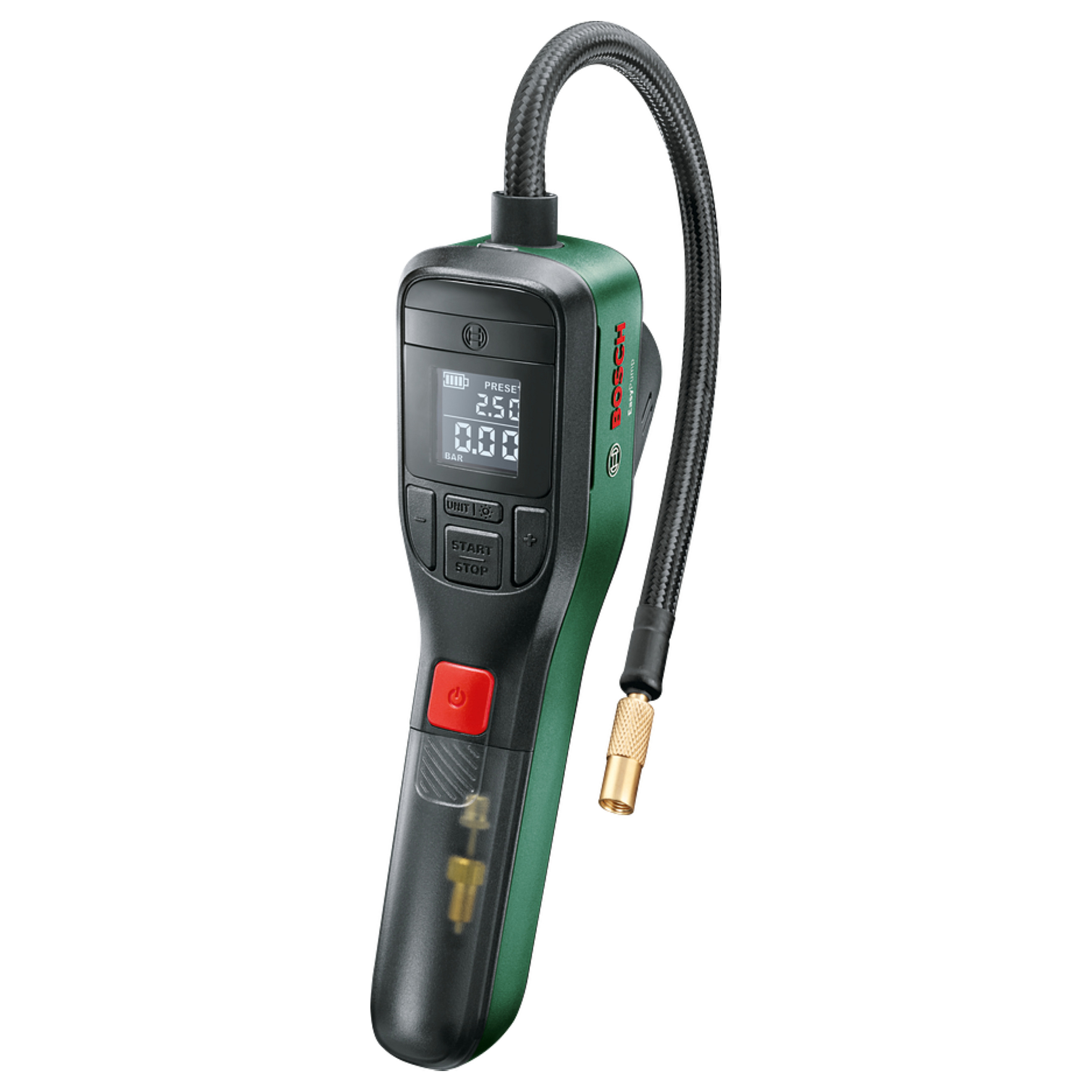 Kleines Gerät mit großer Leistung: Die EasyPump ist Boschs intuitiv bedienbare Druckluftpumpe für alle Anwendungen bis 10,3 bar. Die Echtzeitmessung und die Vorwahlfunktion sorgen für Komfort und genaue Befüllergebnisse. Die Pumpe verfügt über ein klares Bedienfeld und ein großzügiges Display, das auch bei Tageslicht gut ablesbar ist. Ihr leichtes und handliches Design macht sie zum idealen Begleiter. Die EasyPump ist mit verschiedenen Adaptern ausgestattet, die im Staufach ordentlich aufbewahrt sind. Sie kann alle Reifenarten (z. B. vom Auto oder Fahrrad), Bälle (z. B. Fußbälle) und sogar kleine Wassersportartikel aufpumpen. Noch nie war Aufpumpen so einfach.