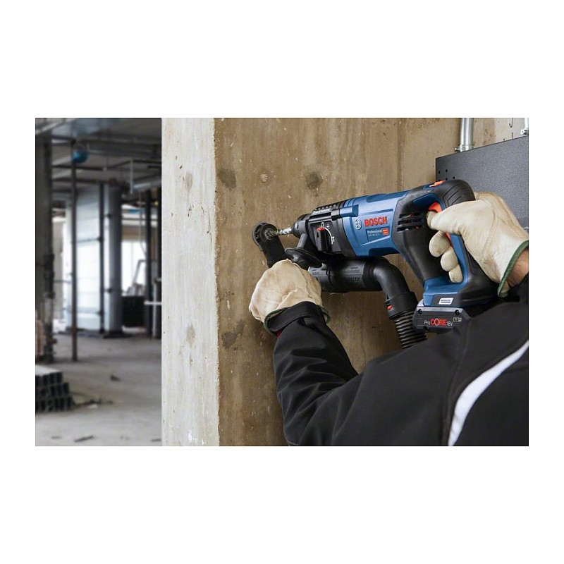 Ferner verfügt der GBH 18V-26 D Professional über eine Meißelfunktion, eine Überlastkupplung, variable Drehzahl und Vario Lock.