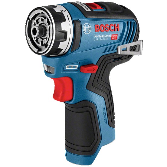 Der Akku-Bohrschrauber GSR 12V-35 FC Professional mit bürstenlosem Motor ist für jeden Einsatz das vielseitigste Werkzeug im 12-Volt-Segment. Sein FlexiClick System umfasst vier Zubehörteile (10-mm-Bohrfutter, arretierbarer Bithalter, Winkelaufsatz (rechtwinklig) und Exzenteraufsatz), die einfach gewechselt, miteinander kombiniert und justiert werden können und so bis zu 8 Konfigurationen und damit höchste Flexibilität bieten. Extrem kompakt bei (mit 35 Nm und 1.750 min-1) gleichzeitig hoher Leistungskapazität bietet das Werkzeug optimale Handlichkeit und eignet sich damit perfekt für Arbeiten an schwer zugänglichen Stellen. Sein bürstenloser Motor in Kombination mit Electronic Motor Protection bietet Schutz vor Überlastung und sorgt für eine längere Haltbarkeit des Werkzeugs. Dieses Werkzeug eignet sich perfekt zum Bohren und Schrauben in Holz (32 mm) und Stahl (10 mm). Es ist kompatibel mit allen Bosch Professional 12V-Akkus und -Ladegeräten. Der GSR 12V-35 FC Professional ist zudem mit 2 Gängen, Autolock, Gürtelclip/-haken, Bithalter, Ladezustandsanzeige, Electronic Cell Protection, LED-Anzeige, Li-Ion-Akku, Metall-Getriebegehäuse, Rechts-/Linkslauf und Drehzahlvorwahl ausgestattet.