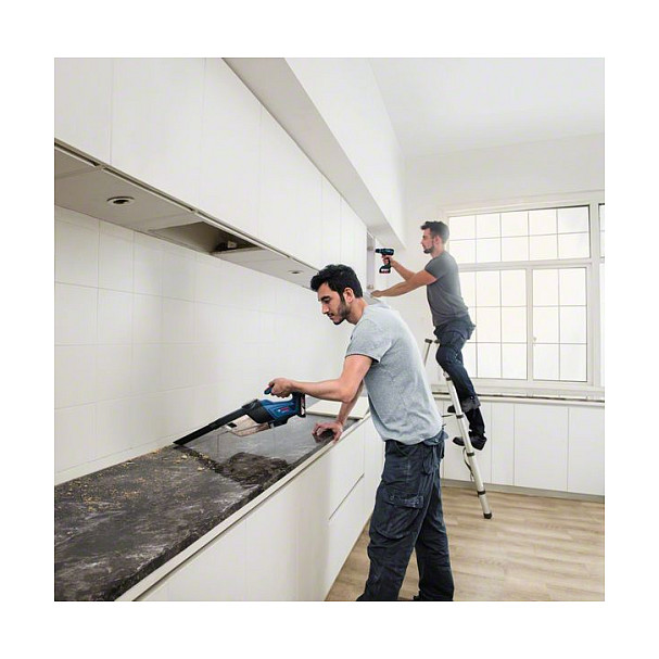 Boschs kompakte Lösung für besenreine Arbeitsbereiche: Der Handstaubsauger GAS 18V-1 Professional ist perfekt für eine trockene Vorreinigung geeignet. Mit seinem besonders kompakten Design, ausgezeichneter Wendigkeit, kabelloser Freiheit und einem Staubbehälter, der sich schnell und einfach leeren lässt, bietet dieser Staubsauger optimales Handling. Er wird mit zahlreichem Zubehör geliefert, das verschiedenste Reinigungsarbeiten ermöglicht und optimale Flexibilität bietet. Perfekte Mobilität und leichter Transport: Der GAS 18V-1 Professional passt außerdem bequem in die L-BOXX.
